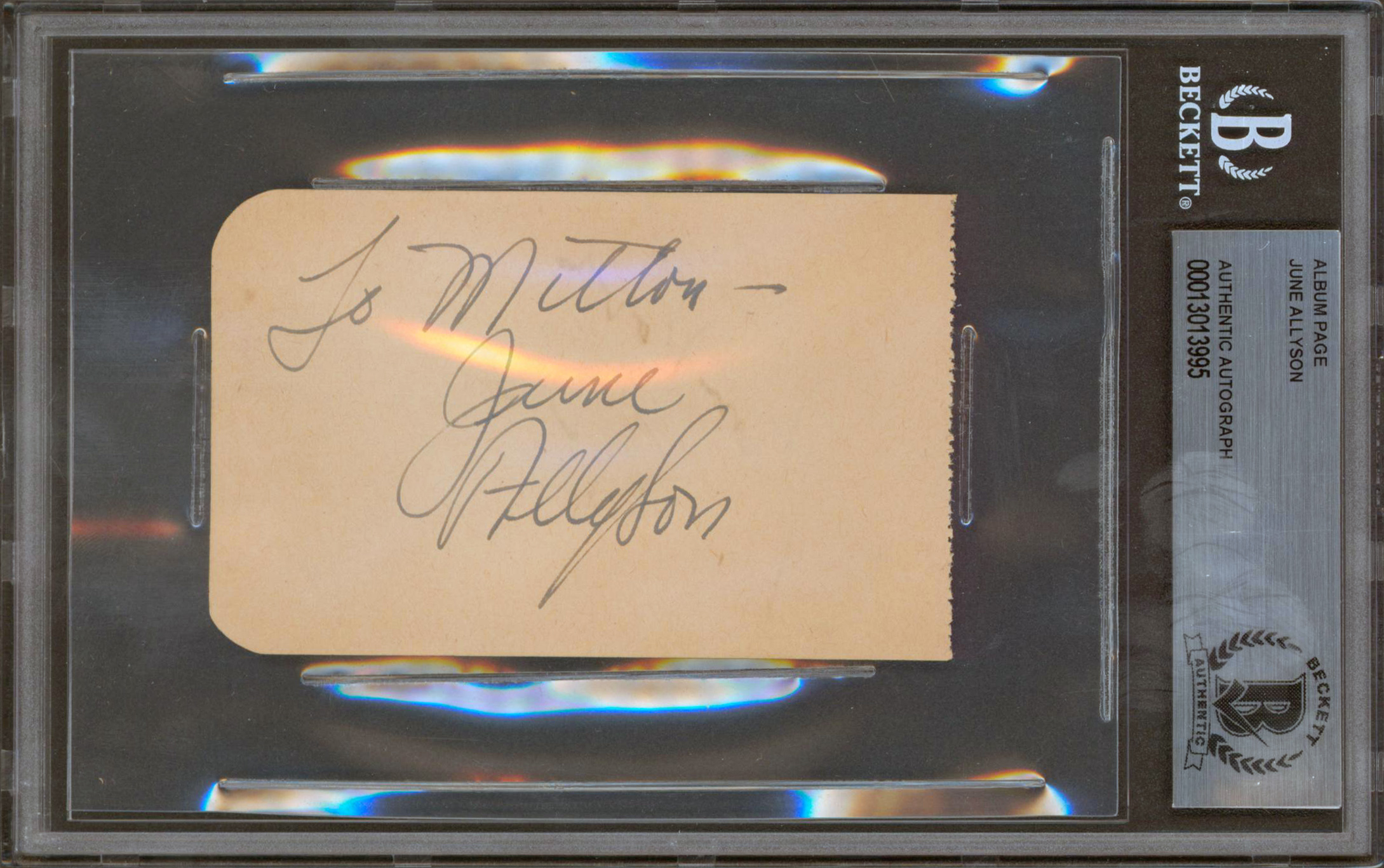 June Allyson Little Women Authentic Signed 2.4x3.85 Album Page BAS Slabbed