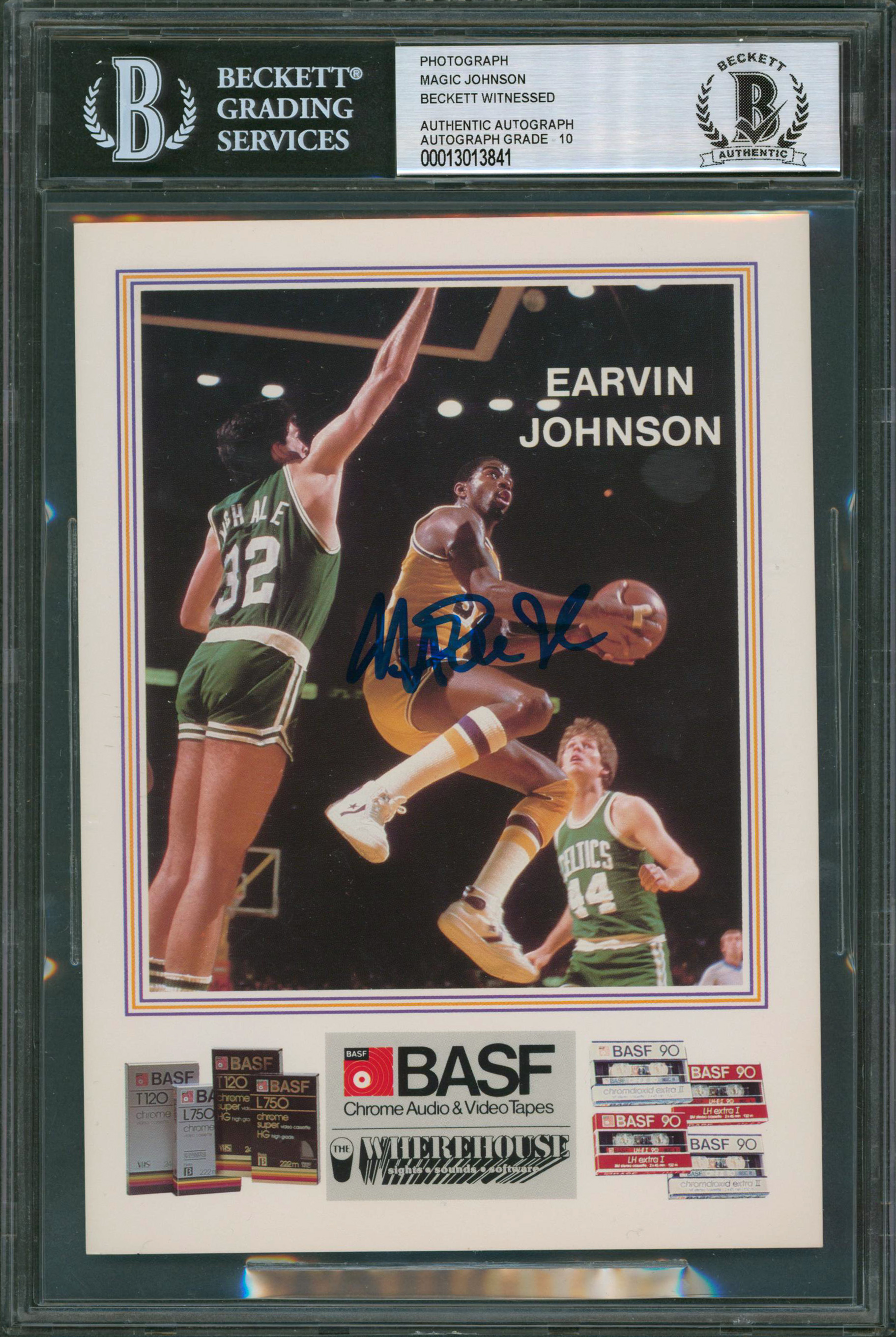 Lakers Magic Johnson Authentic Signed Promo 5x7 Photo Auto Graded 10 BAS Slabbed