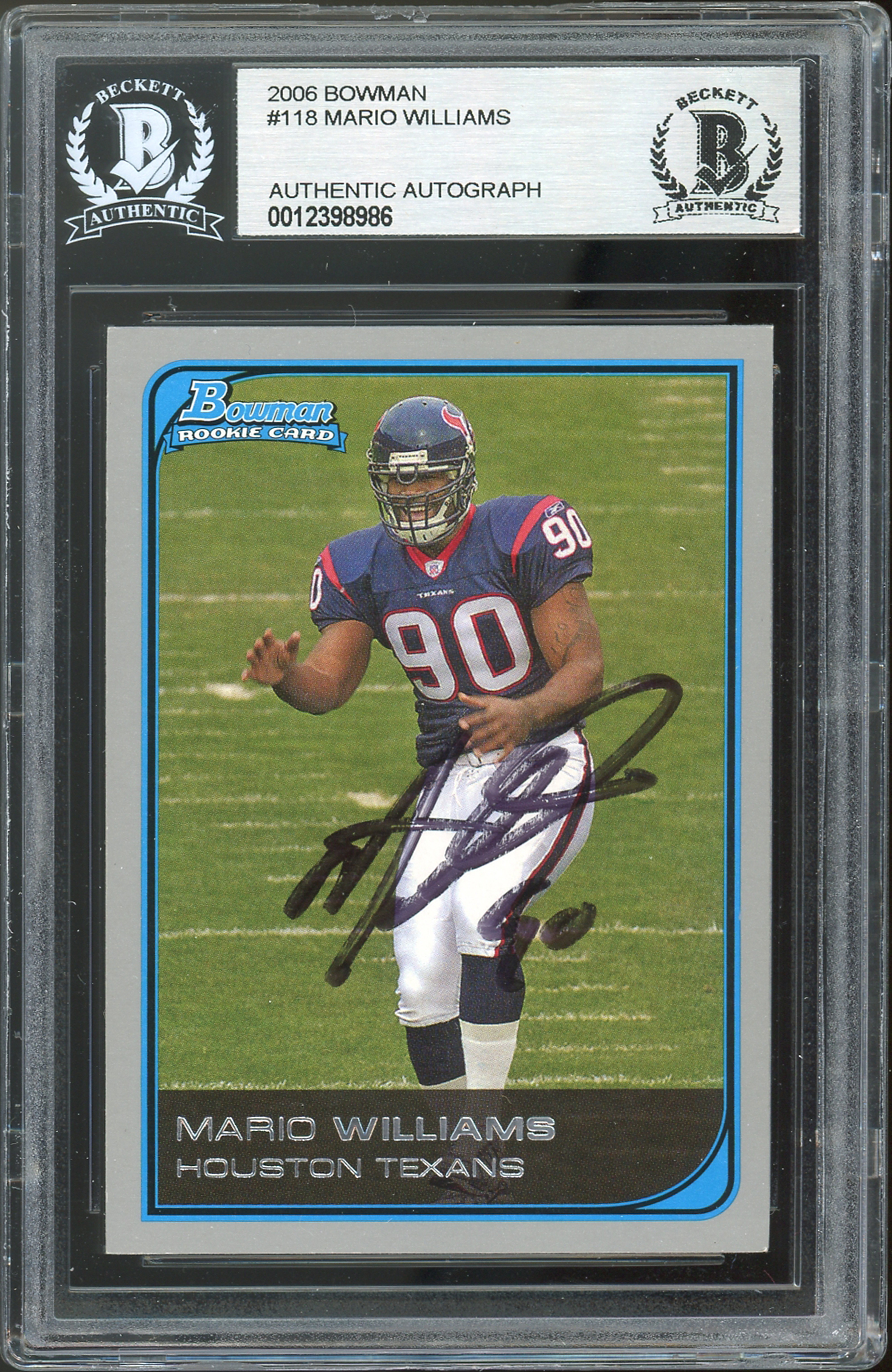 Texans Mario Williams Authentic Signed 2006 Bowman #118 Card BAS Slabbed