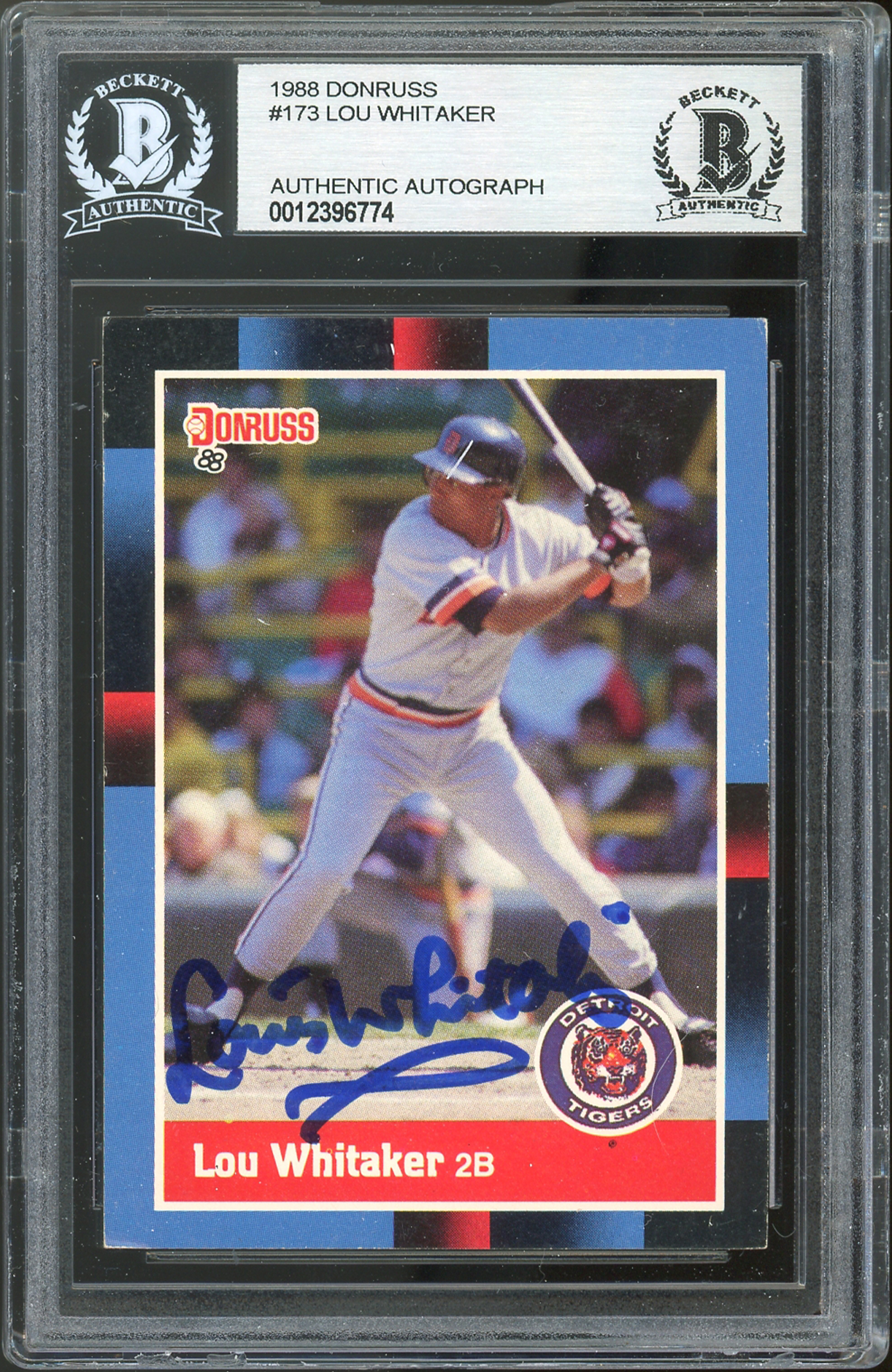 Tigers Lou Whitaker Authentic Signed 1988 Donruss #173 Card BAS Slabbed