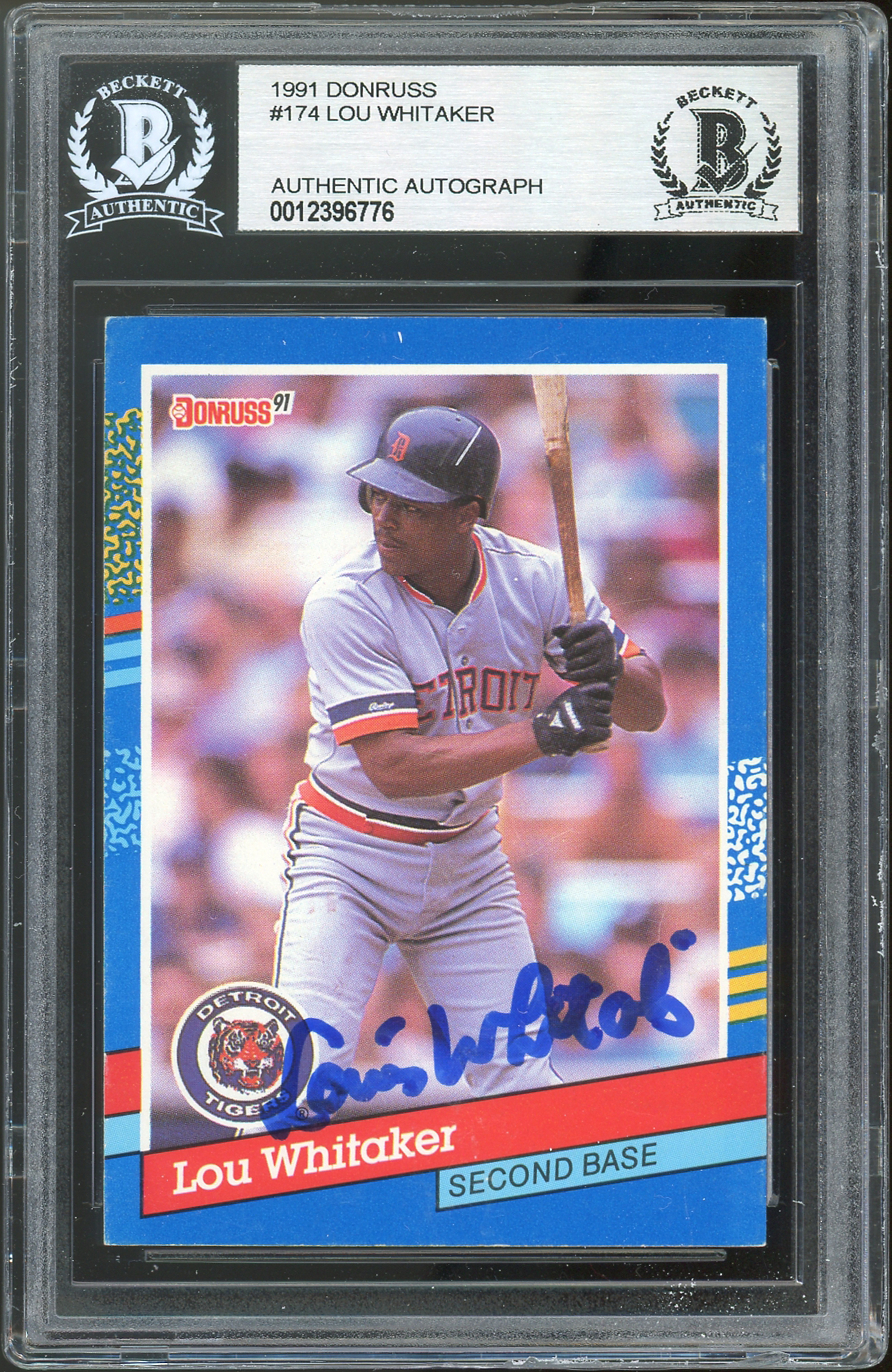 Tigers Lou Whitaker Authentic Signed 1991 Donruss #174 Card BAS Slabbed
