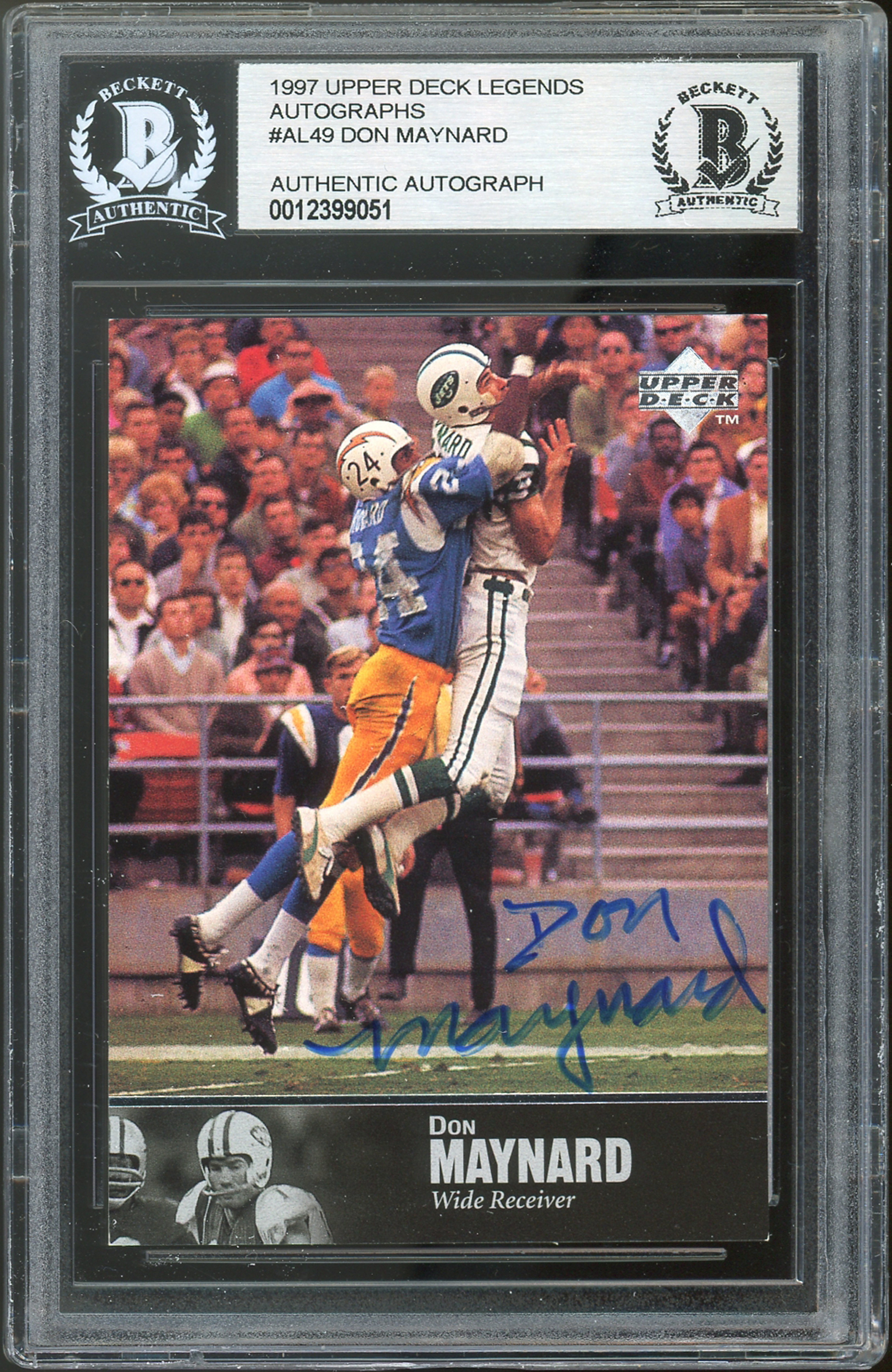 Jets Don Maynard Signed 1997 Upper Deck Legends Autographs #AL49 Card BAS Slab