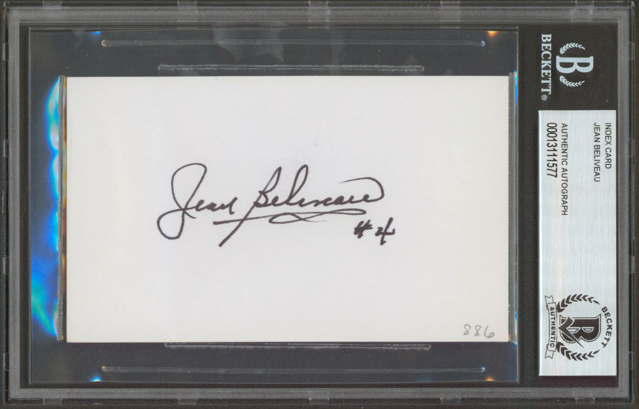 Canadiens Jean Beliveau Authentic Signed 3x5 Index Card Autographed BAS Slabbed