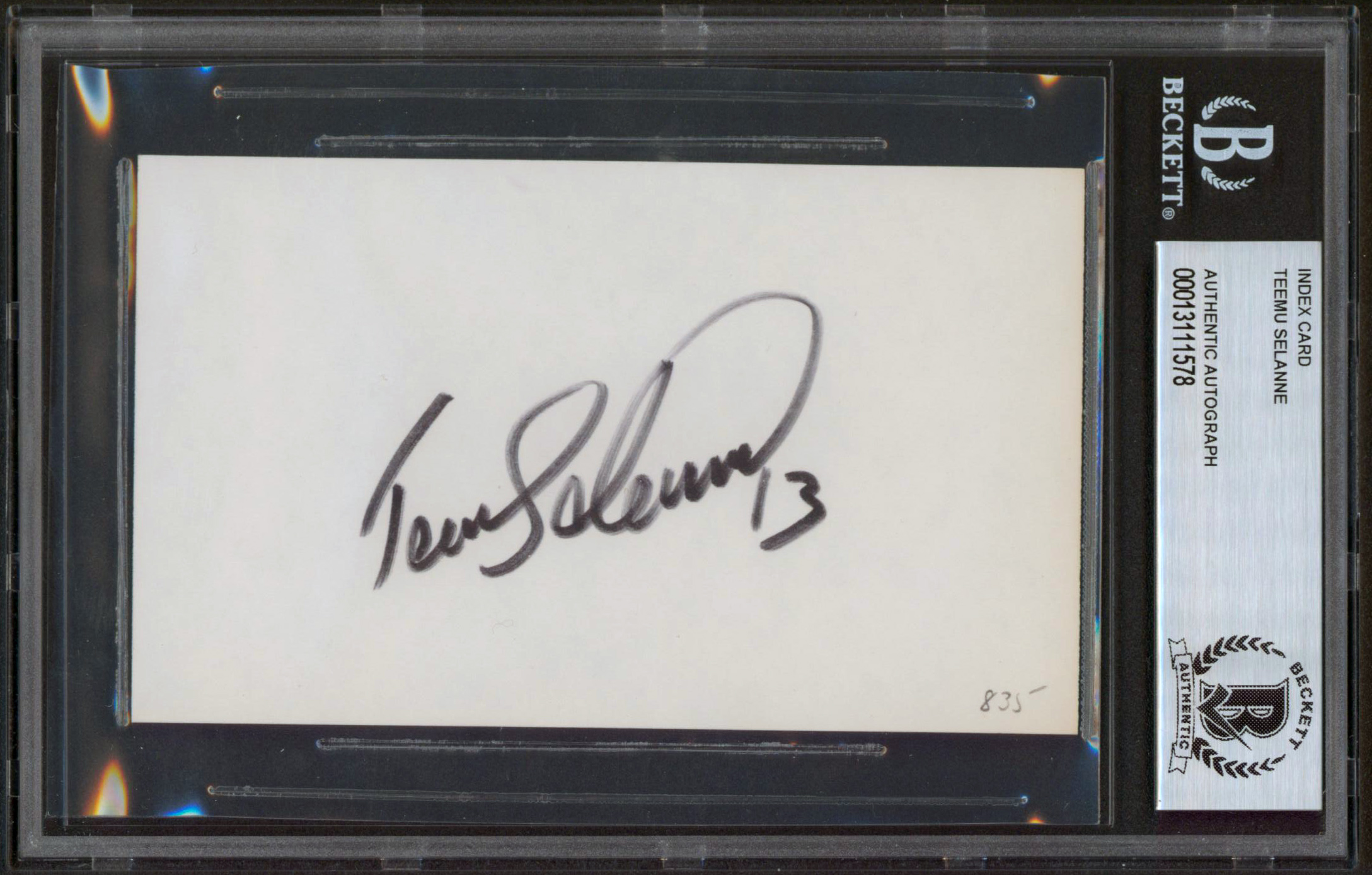 Ducks Teemu Selanne Authentic Signed 3x5 Index Card Autographed BAS Slabbed