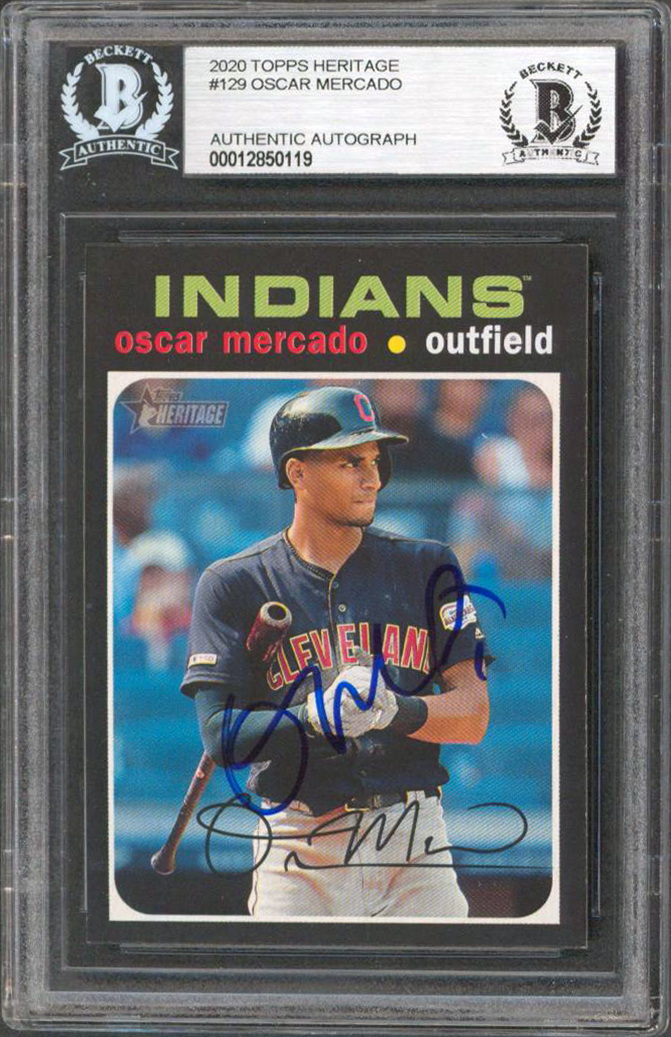 Indians Oscar Mercado Signed 2020 Topps Heritage #129 Rookie Card BAS Slabbed