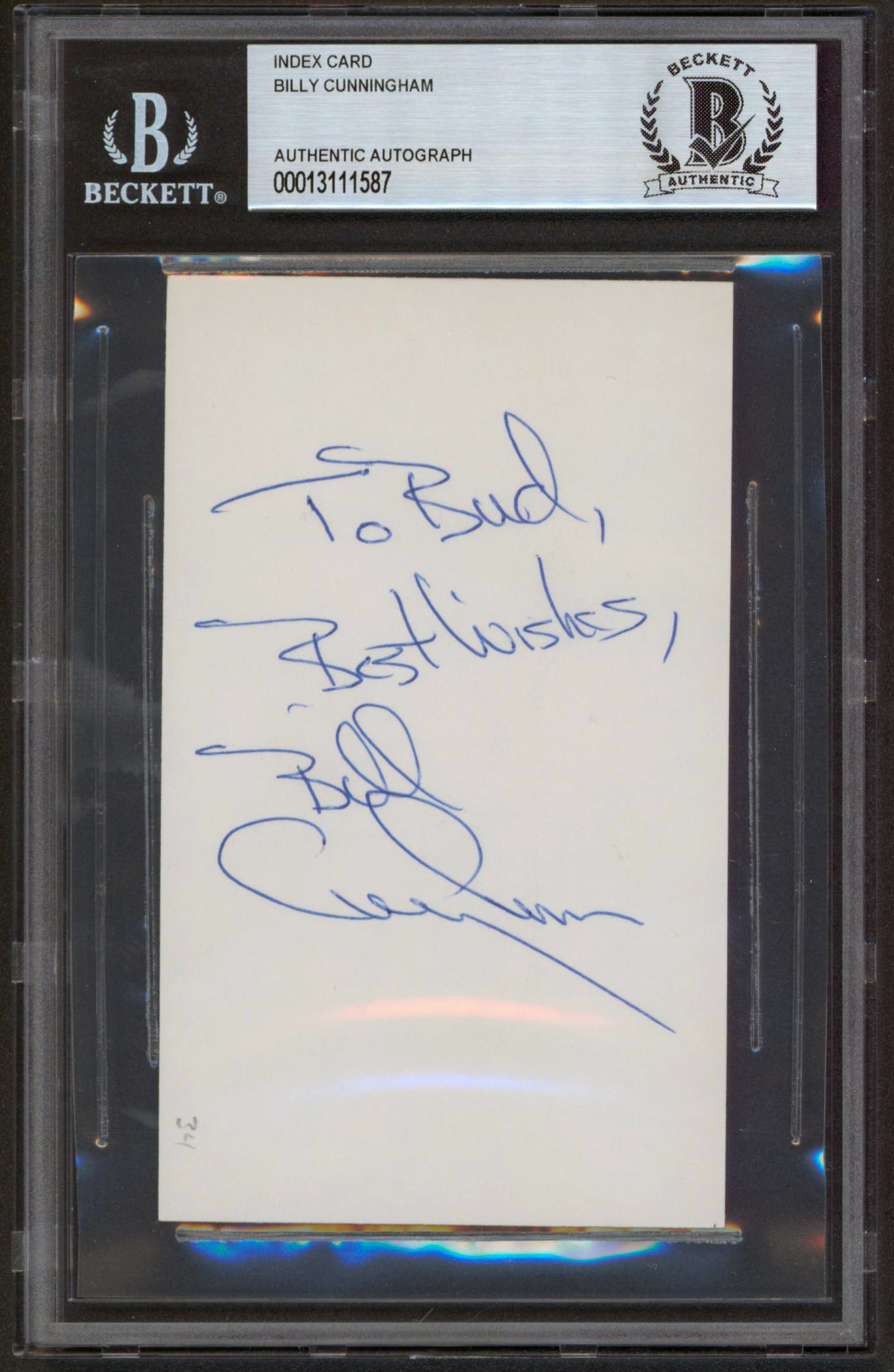 76ers Billy Cunningham "Best Wishes" Authentic Signed 3x5 Index Card BAS Slabbed