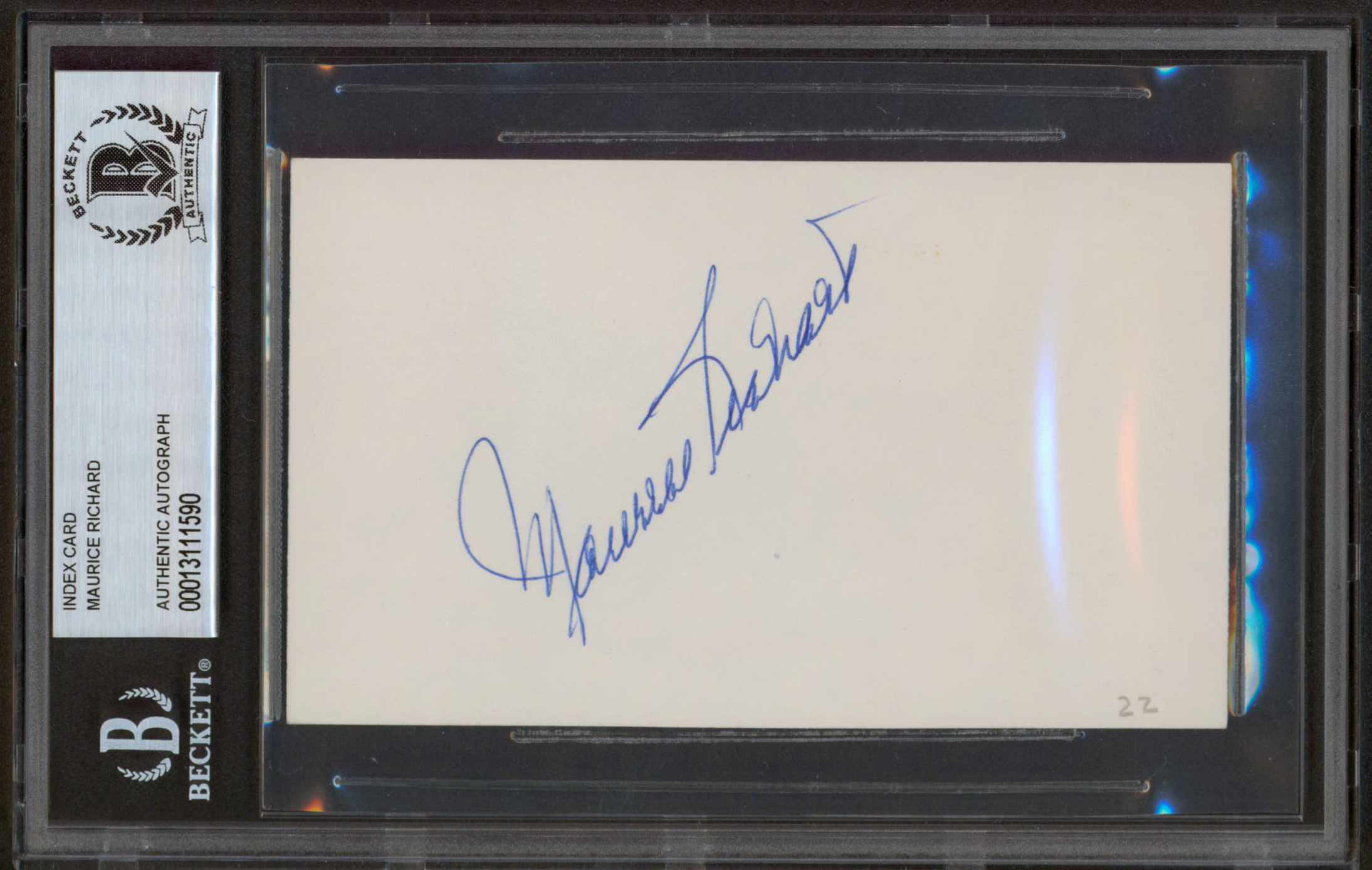 Canadiens Maurice Richard Authentic Signed 3x5 Index Card BAS Slabbed