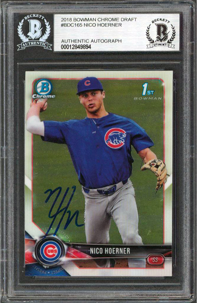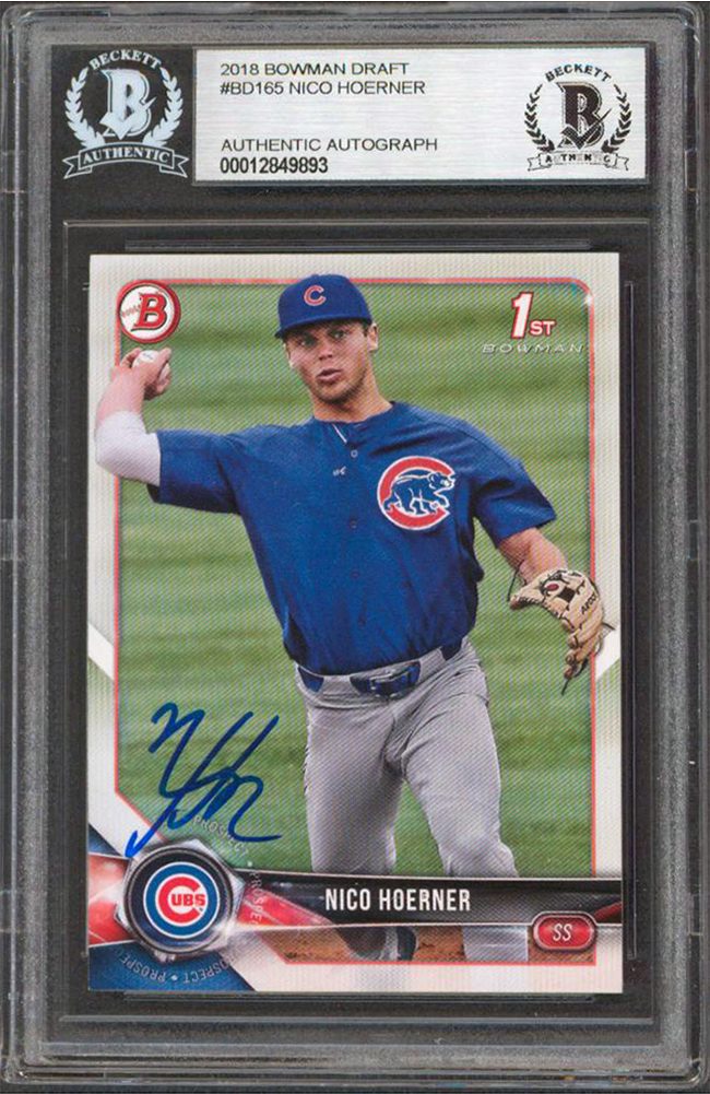 Cubs Nico Hoerner Authentic Signed 2018 Bowman Chrome Draft #BDC165 RC BAS Slab