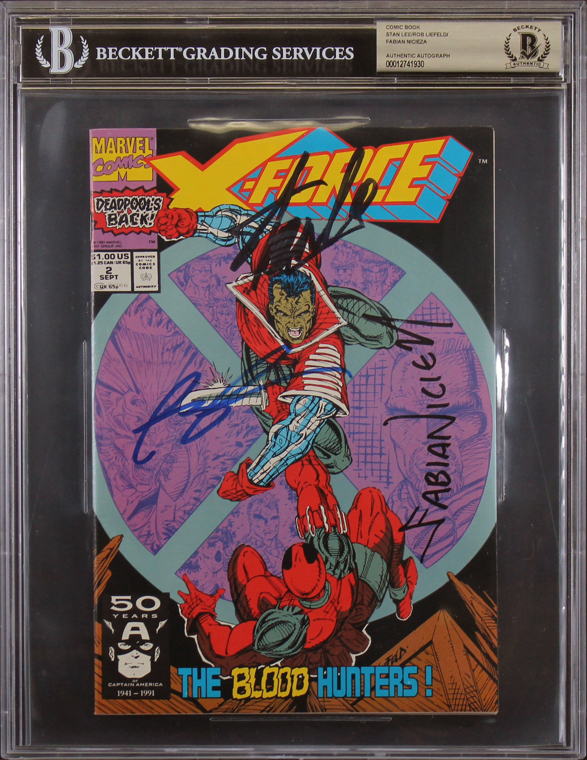 (3) Stan Lee, Liefeld & Nicieza Authentic Signed X-Force #2 Comic BAS Slabbed