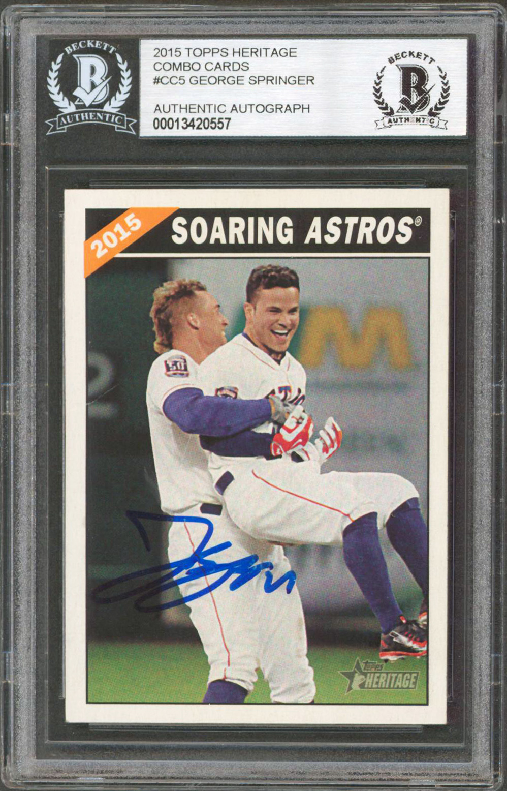 Astros George Springer Signed 2015 Topps Heritage Combo #CC5 Card BAS Slabbed