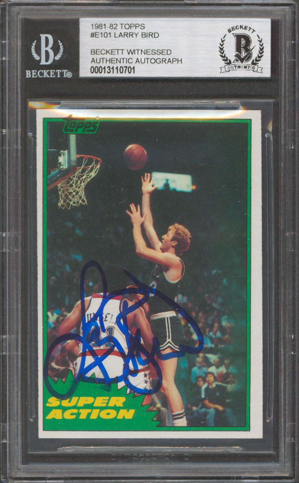 Celtics Larry Bird Authentic Signed 1981 Topps #E101 Card Autographed BAS Slab