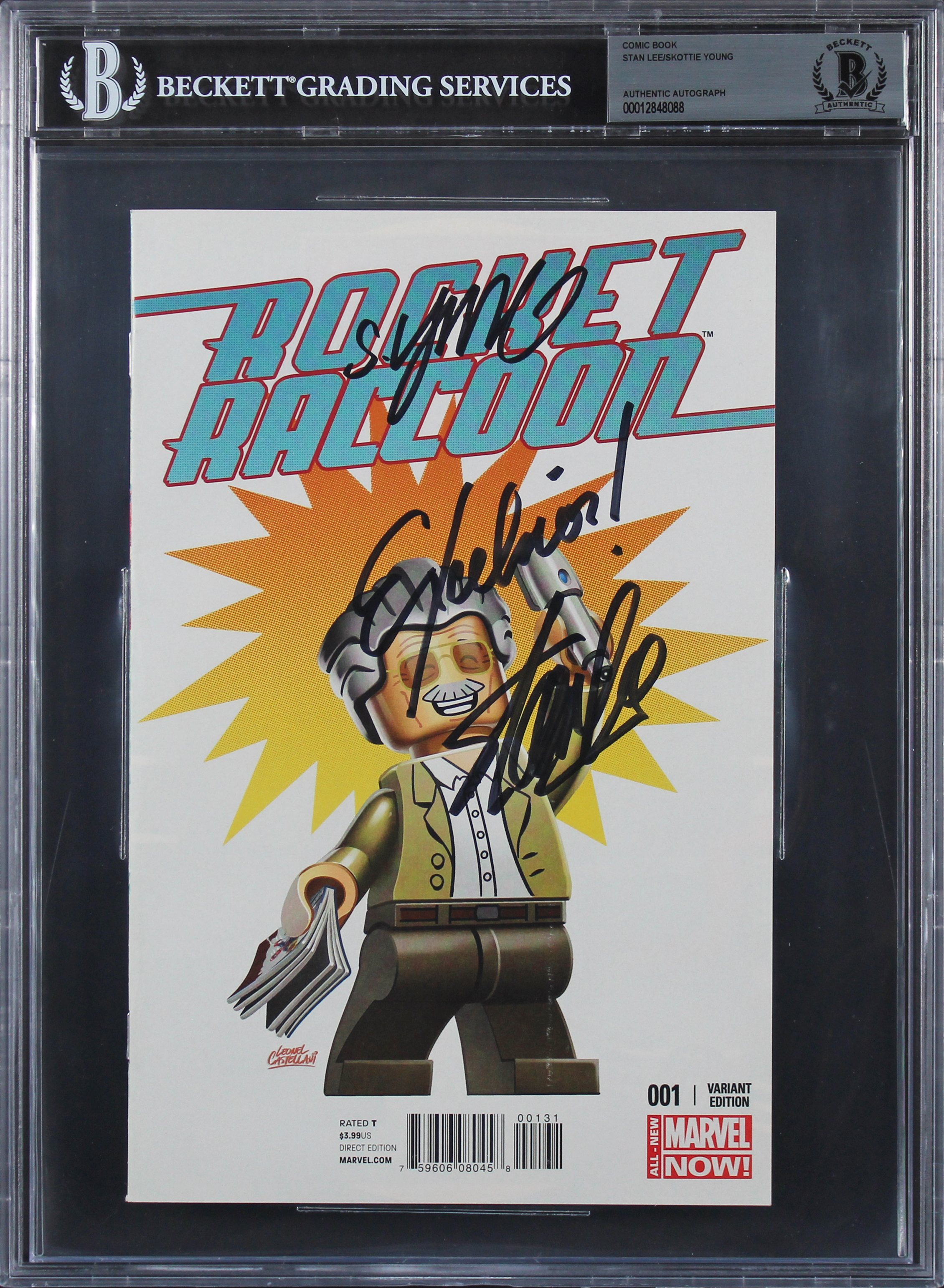 Stan Lee & Skottie Young Excelsior! Signed Rocket Raccoon 001 Var Comic BAS Slab