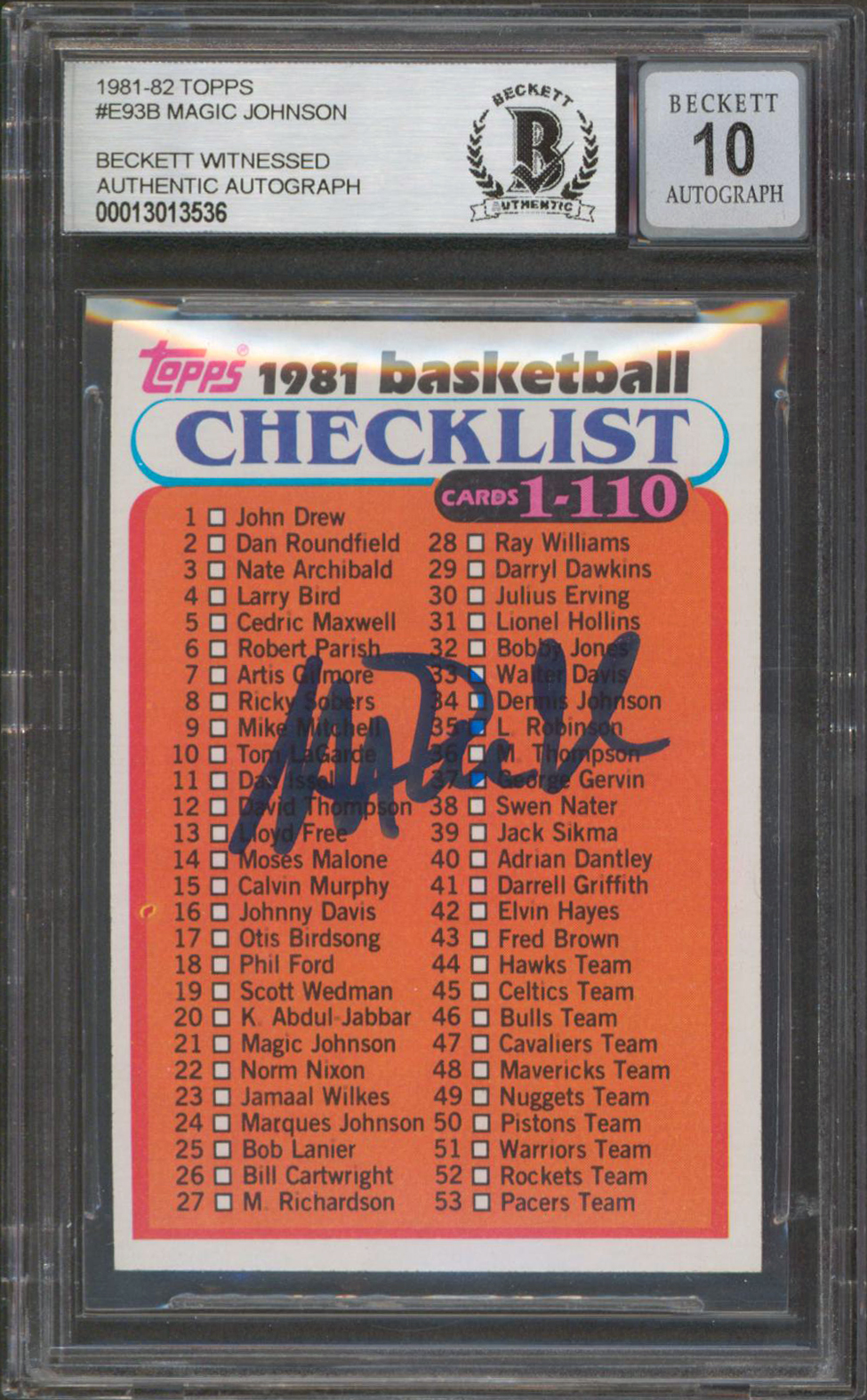 Lakers Magic Johnson Signed 1981 Topps Checklist #E93B Card Auto 10! BAS Slabbed