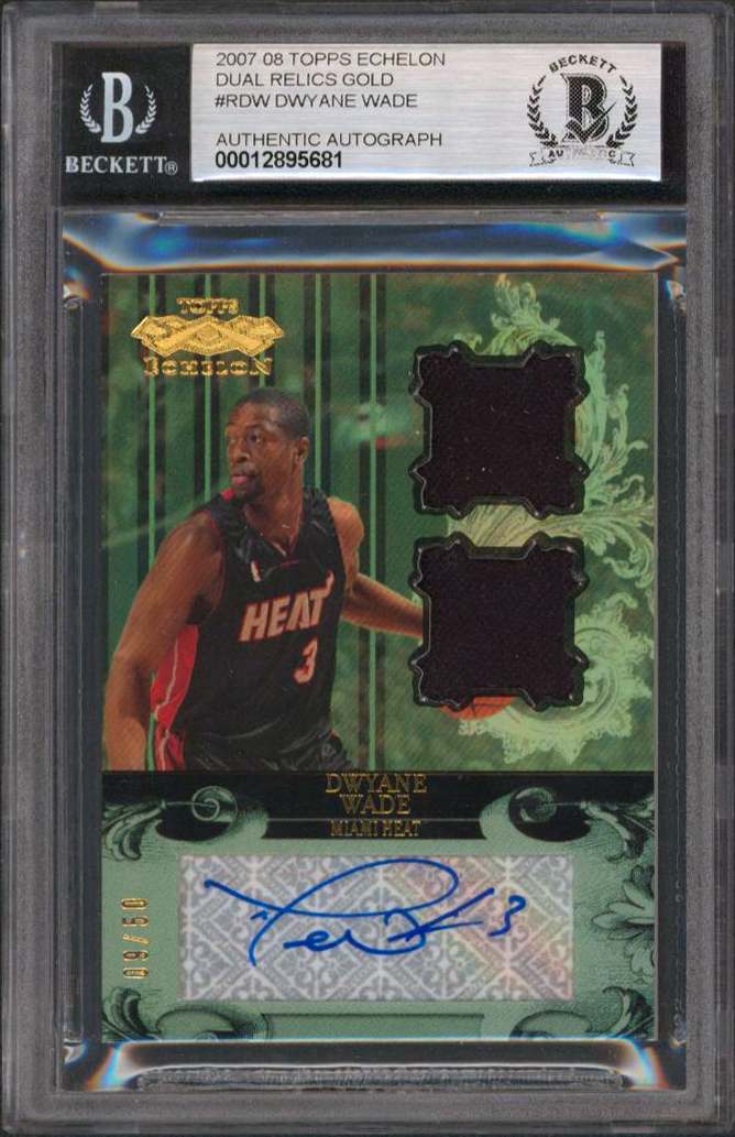 Dwyane Wade Signed 07 Topps Echelon Dual Relic Gold 09/50 Card Auto 10 BAS Slab