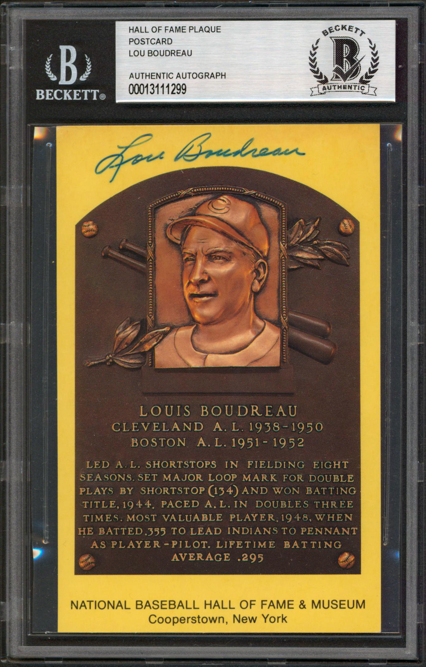 Indians Lou Boudreau Authentic Signed 3.5x5.5 Postcard Autographed BAS Slabbed