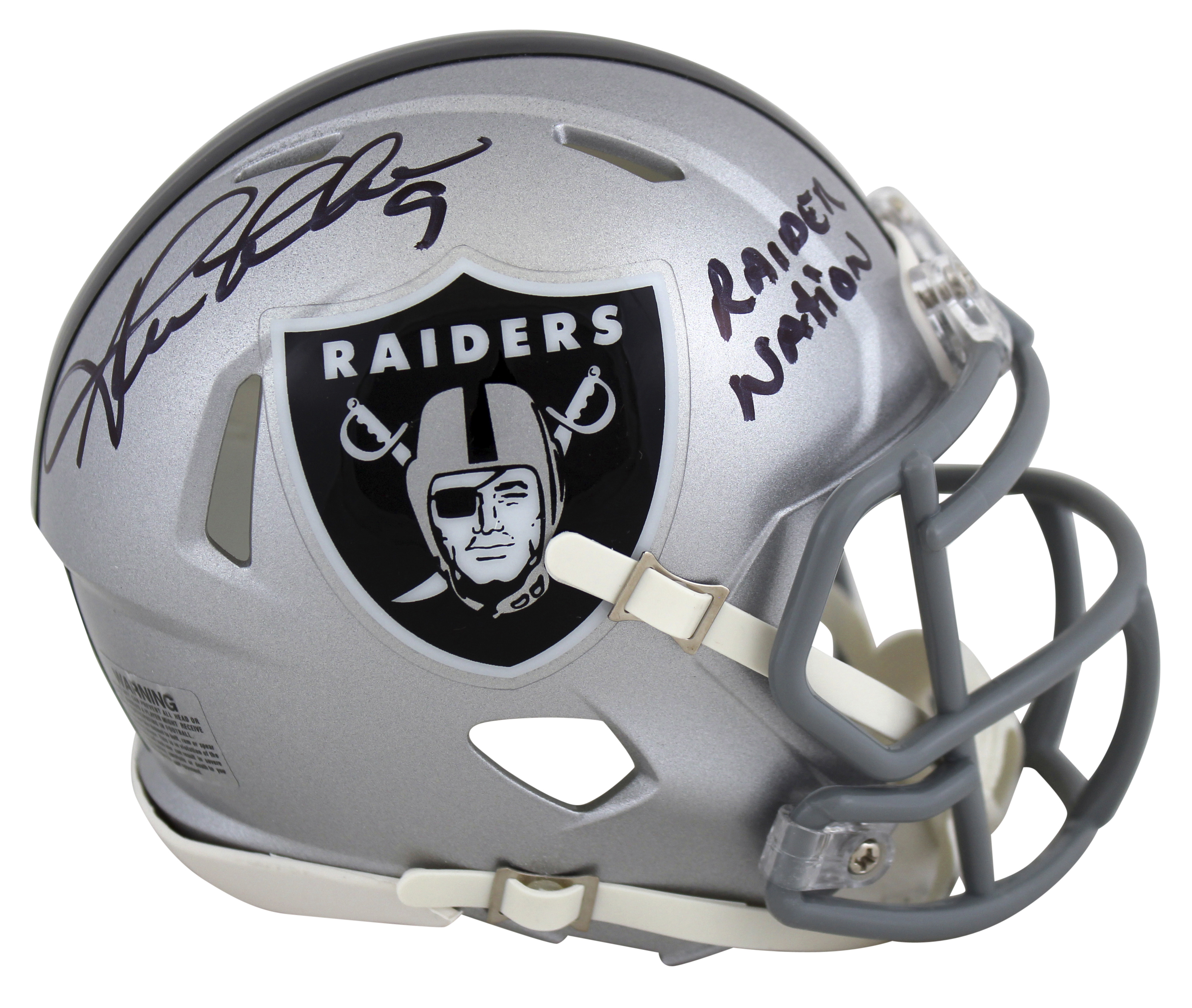 Raiders Shane Lechler Raider Nation Signed Silver Speed Mini Helmet BAS Witness