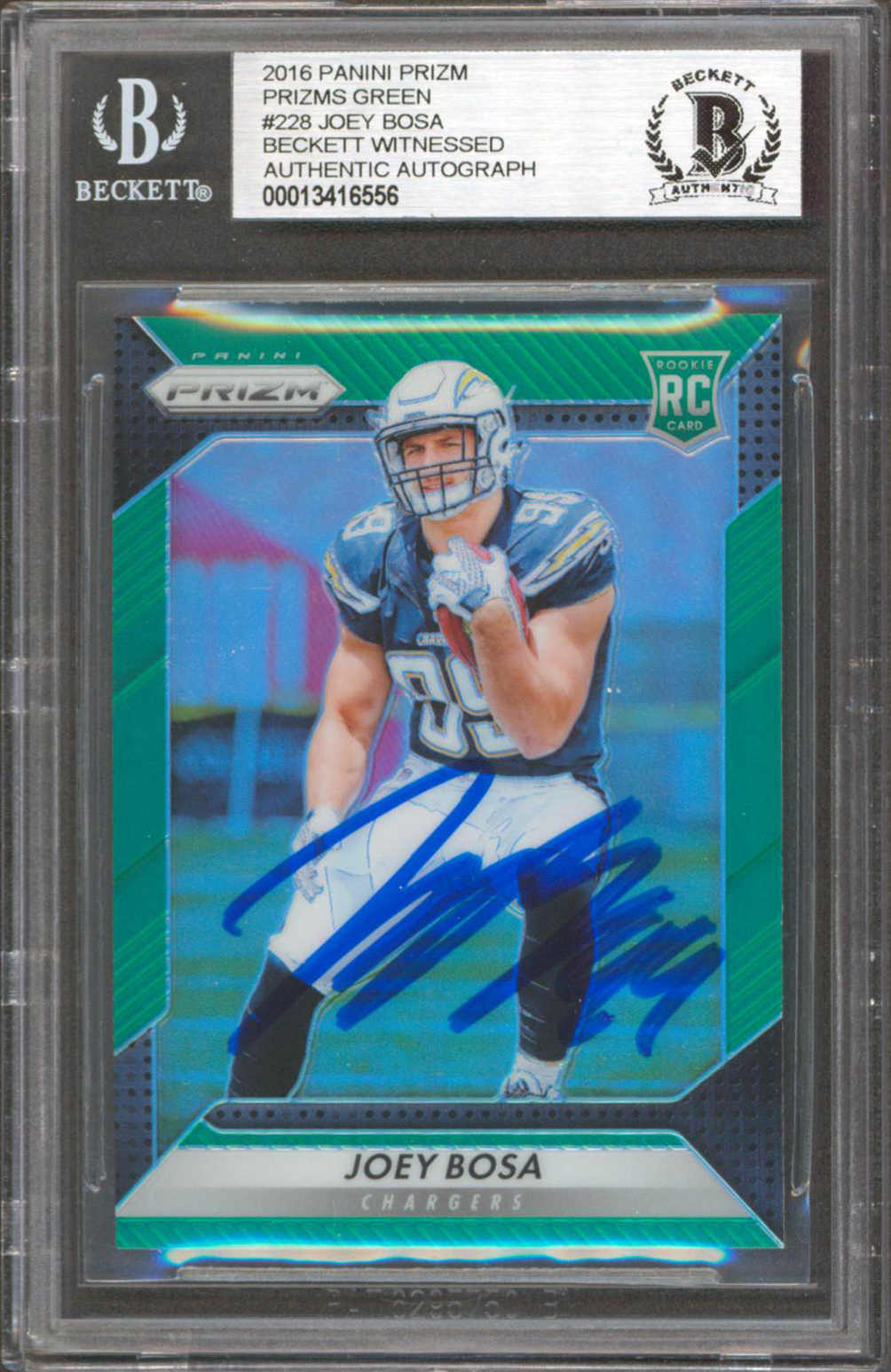 Chargers Joey Bosa Signed 2016 Panini Prizm Green #228 Rookie Card BAS Slabbed