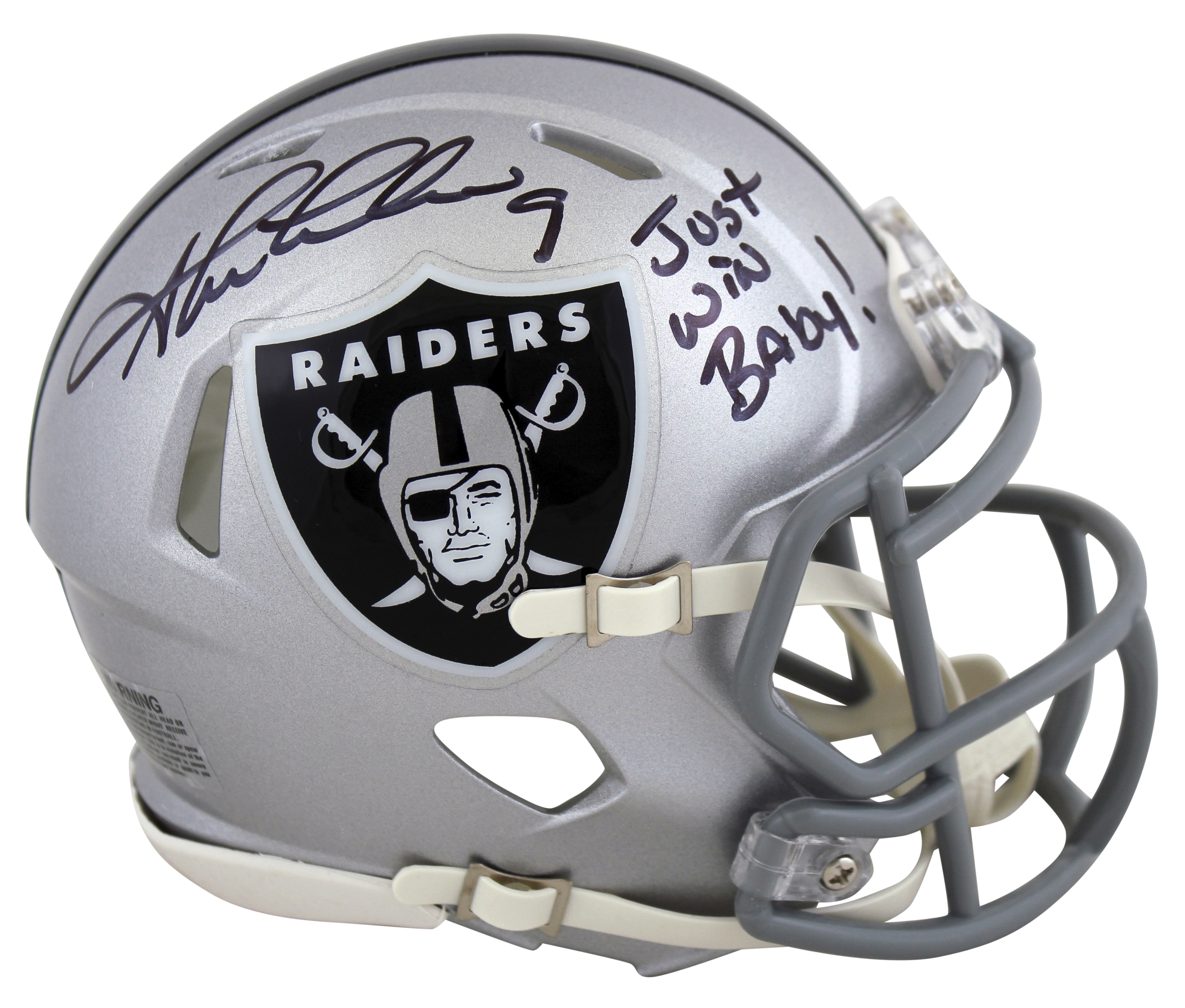 Raiders Shane Lechler Just Win Baby Signed Silver Speed Mini Helmet BAS Witness