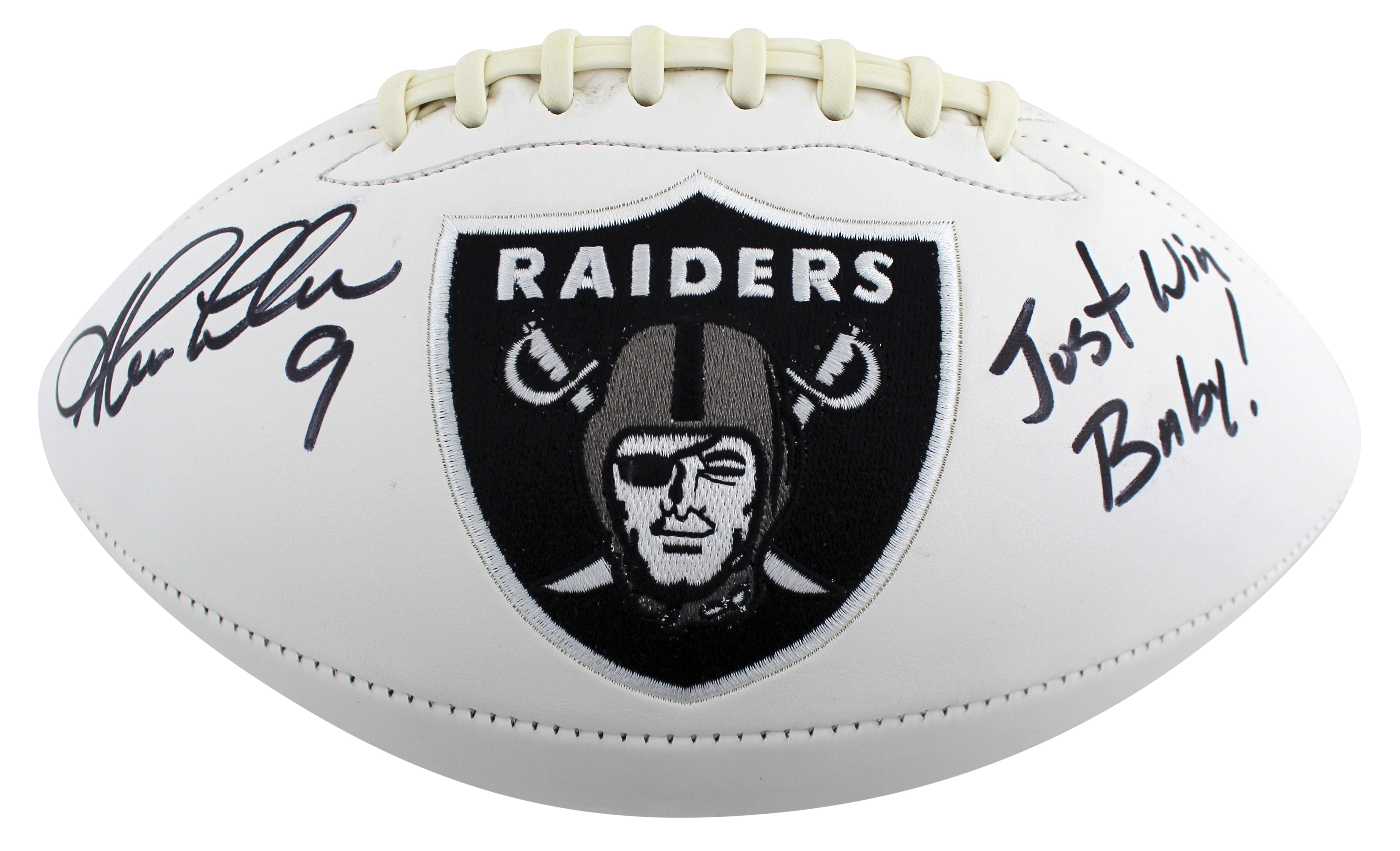 Raiders Shane Lechler Just Win Baby Signed White Panel Logo Football BAS Witness