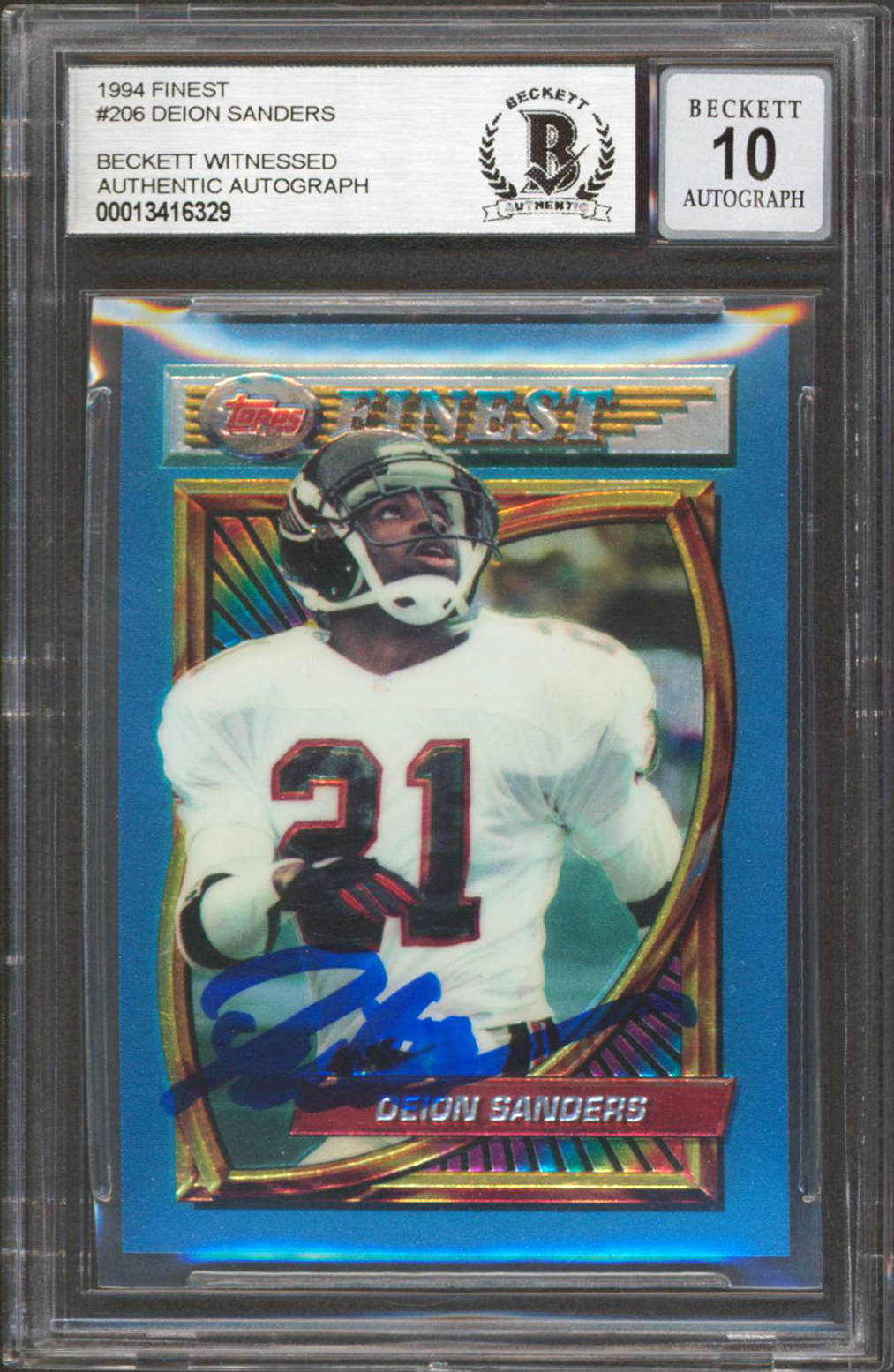 Falcons Deion Sanders Authentic Signed 1994 Finest #206 Card Auto 10 BAS Slabbed