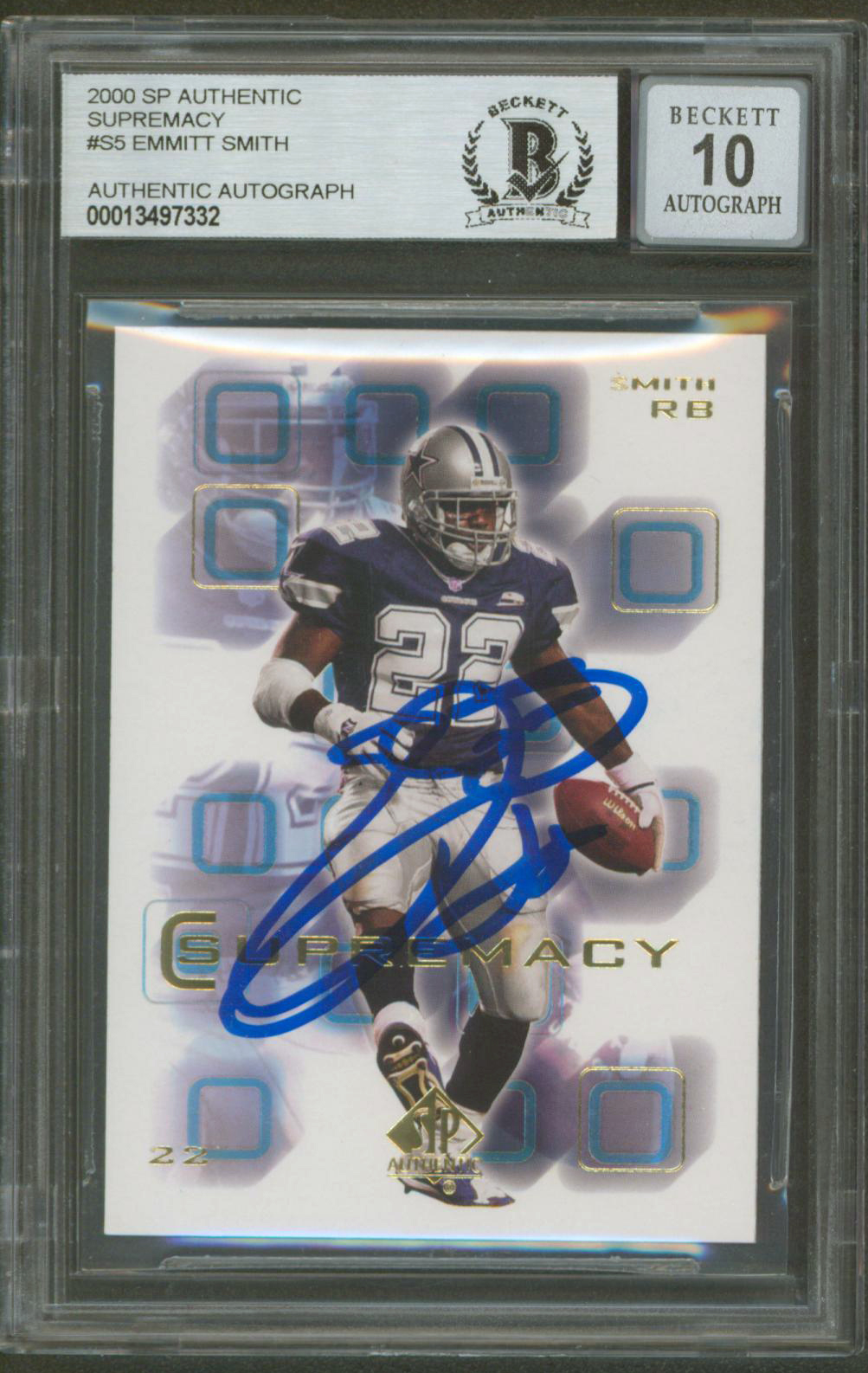 Cowboys Emmitt Smith Signed 2000 SP Authentic Supremacy #S5 Auto 10! BAS Slabbed