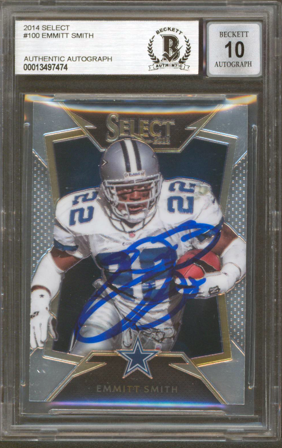 Cowboys Emmitt Smith Signed 2014 Select #100 Card Auto Graded 10! BAS Slabbed