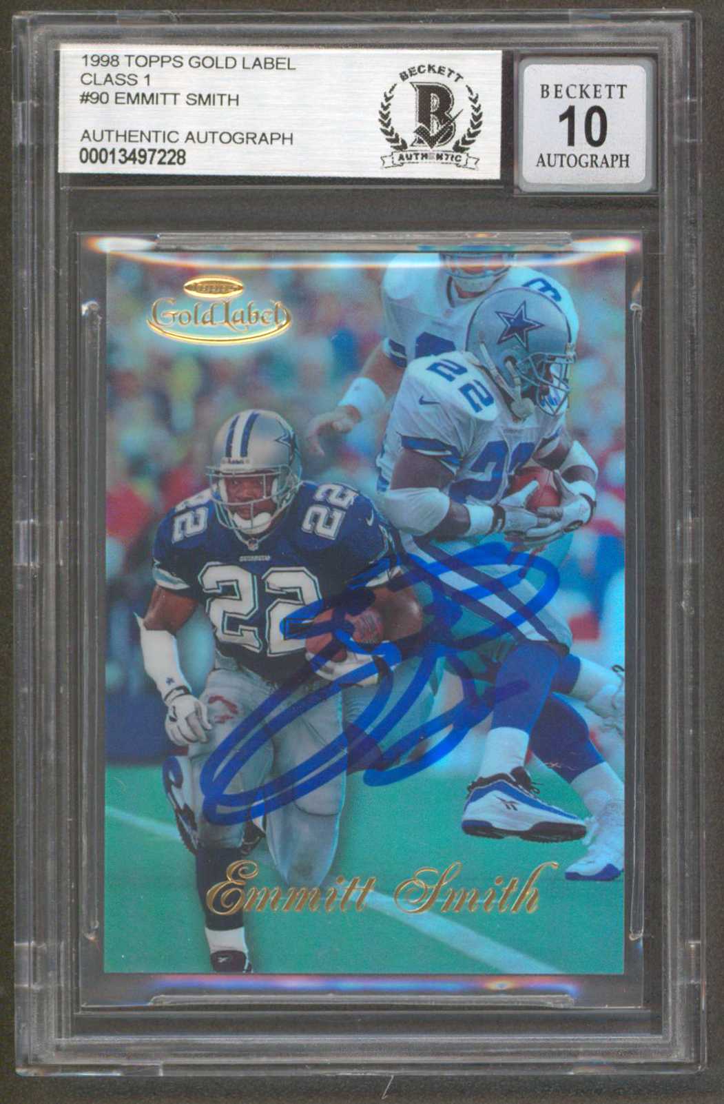 Cowboys Emmitt Smith Signed 1998 Topps Gold Label C1 #90 Card Auto 10! BAS Slab