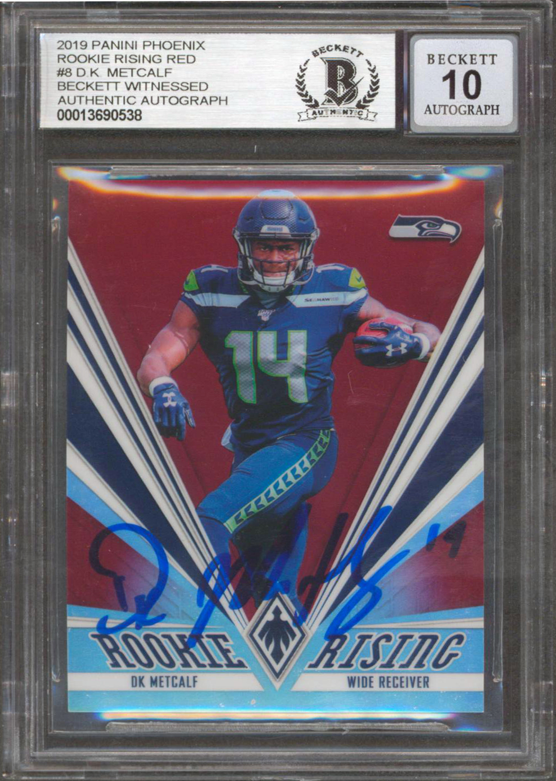 D.K. Metcalf Signed 2019 Panini Phoenix Rookie Rising Red #8 Auto 10! BAS Slab