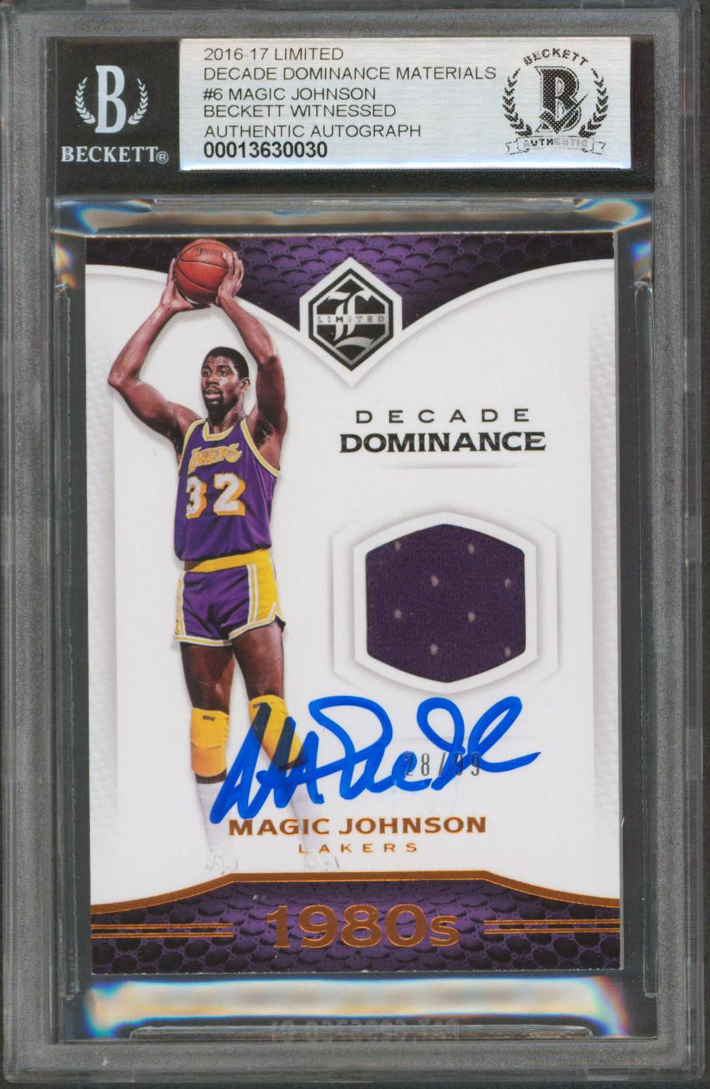 Magic Johnson Signed 2016 Limited Decade Dominance Mat #6 Card Auto 10 BAS Slab