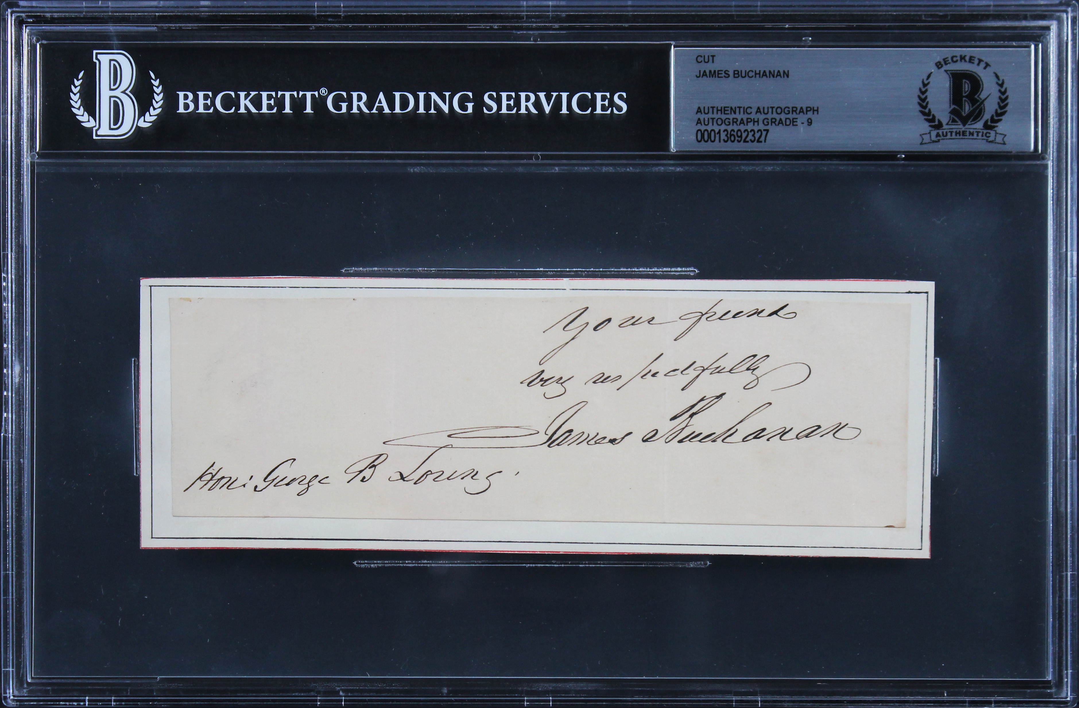 James Buchanan "Very Respectfully" Signed 2x6.25 Cut Signature Auto 9! BAS Slab