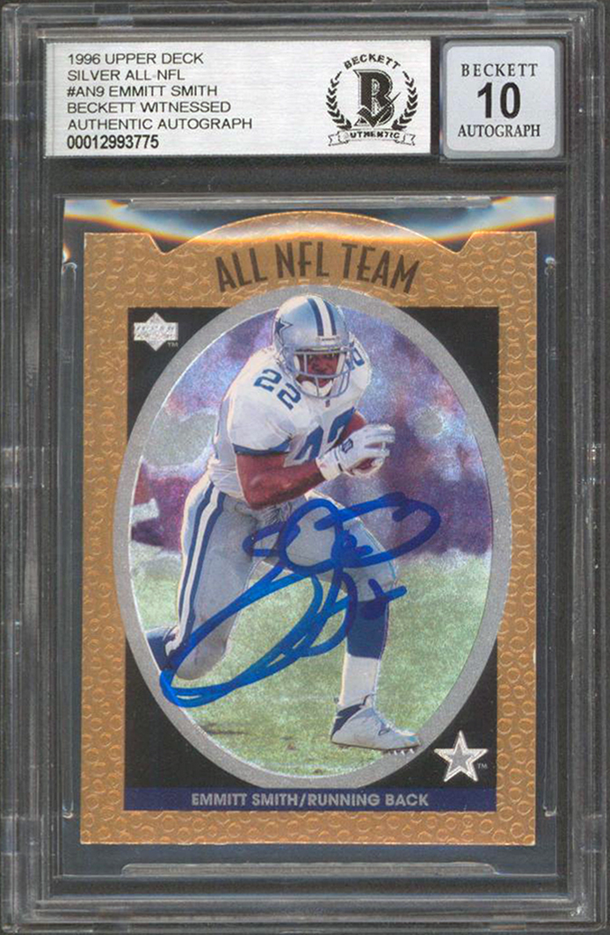 Cowboys Emmitt Smith Signed 1996 UD Silver All-NFL #AN9 Card Auto 10! BAS Slab
