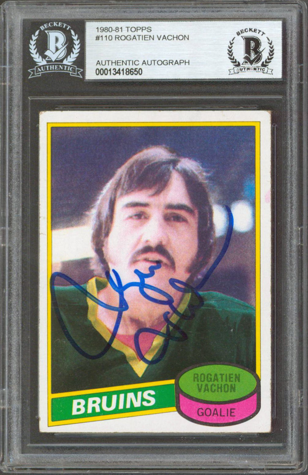 Bruins Rogatien Vachon Authentic Signed 1980 Topps #110 Card BAS Slabbed