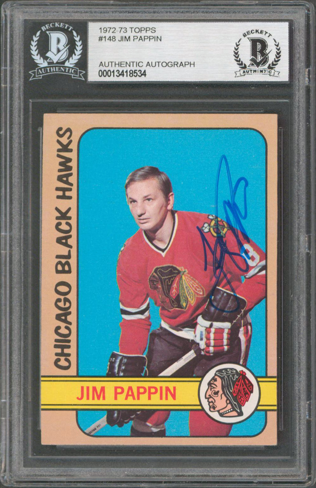 Blackhawks Jim Pappin Authentic Signed 1972 Topps #148 Card BAS Slabbed