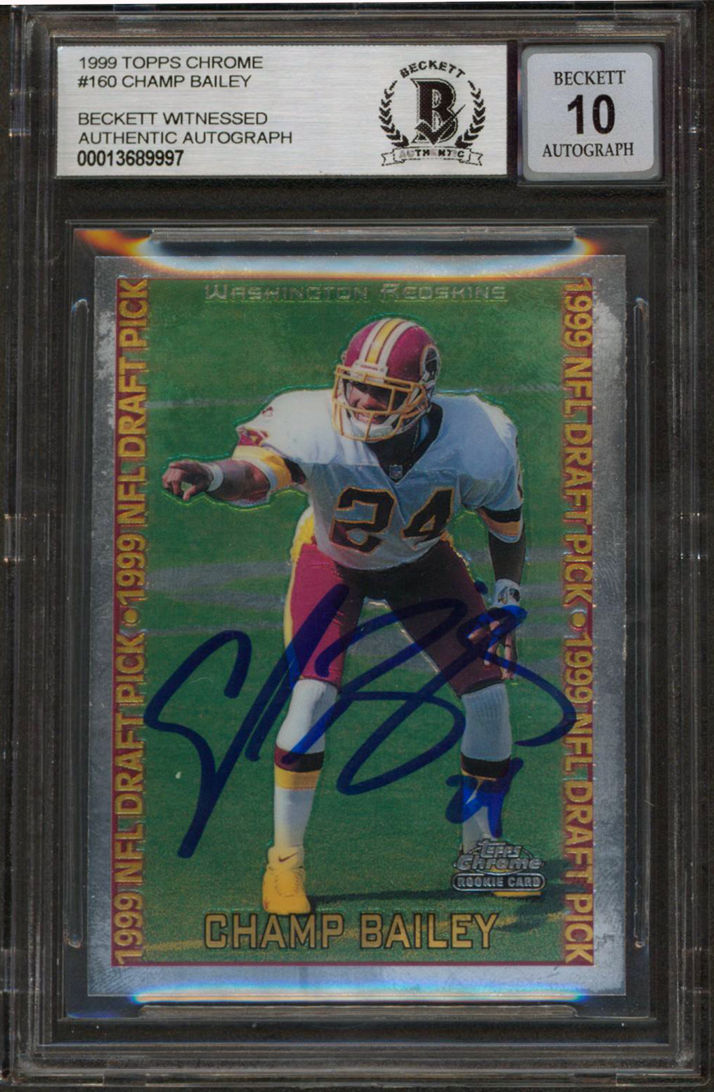 Broncos Champ Bailey Signed 1999 Topps Chrome #160 Rookie Card Auto 10! BAS Slab