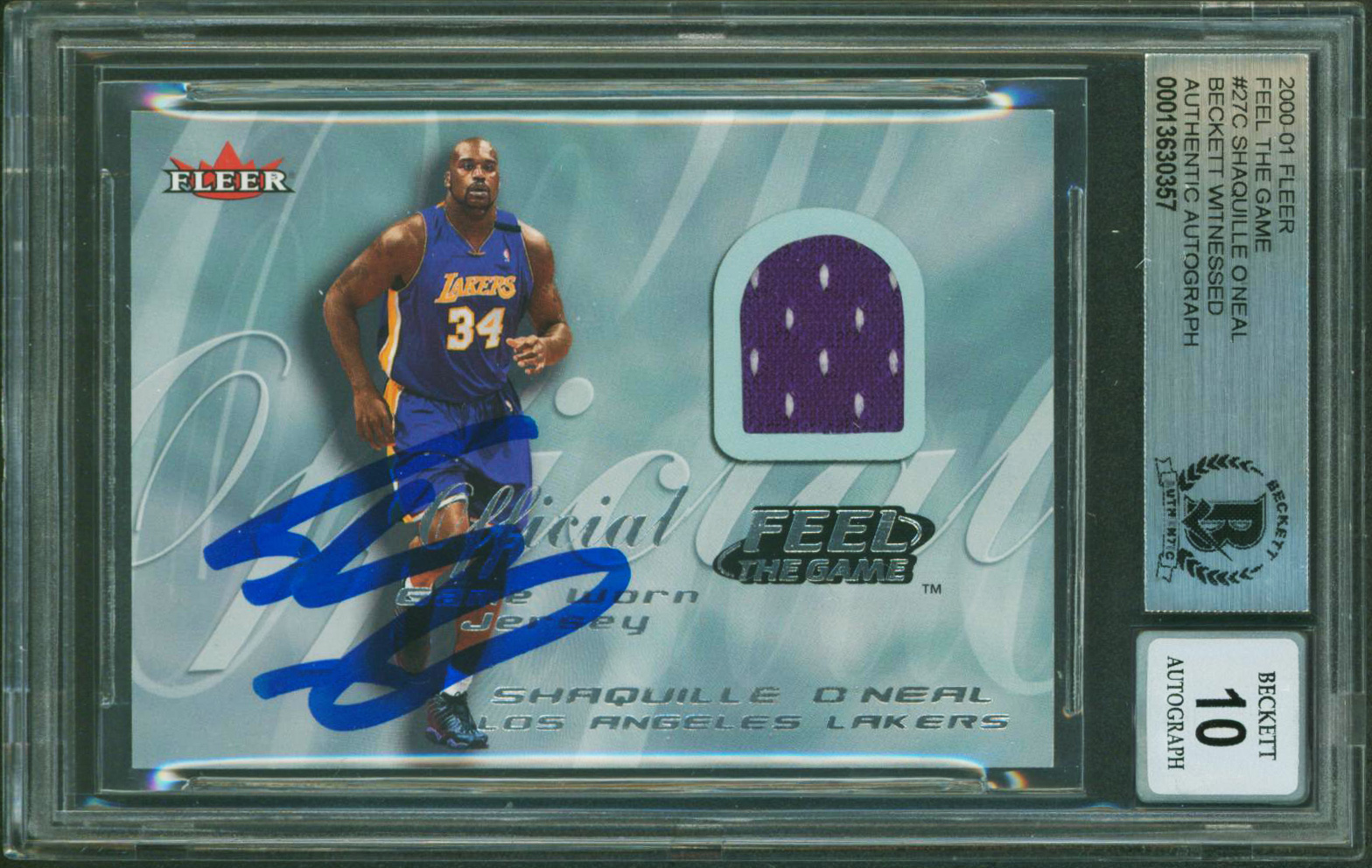 Shaquille O'Neal Signed 2000 Fleer Feel The Game #27C Card Auto 10! BAS Slabbed
