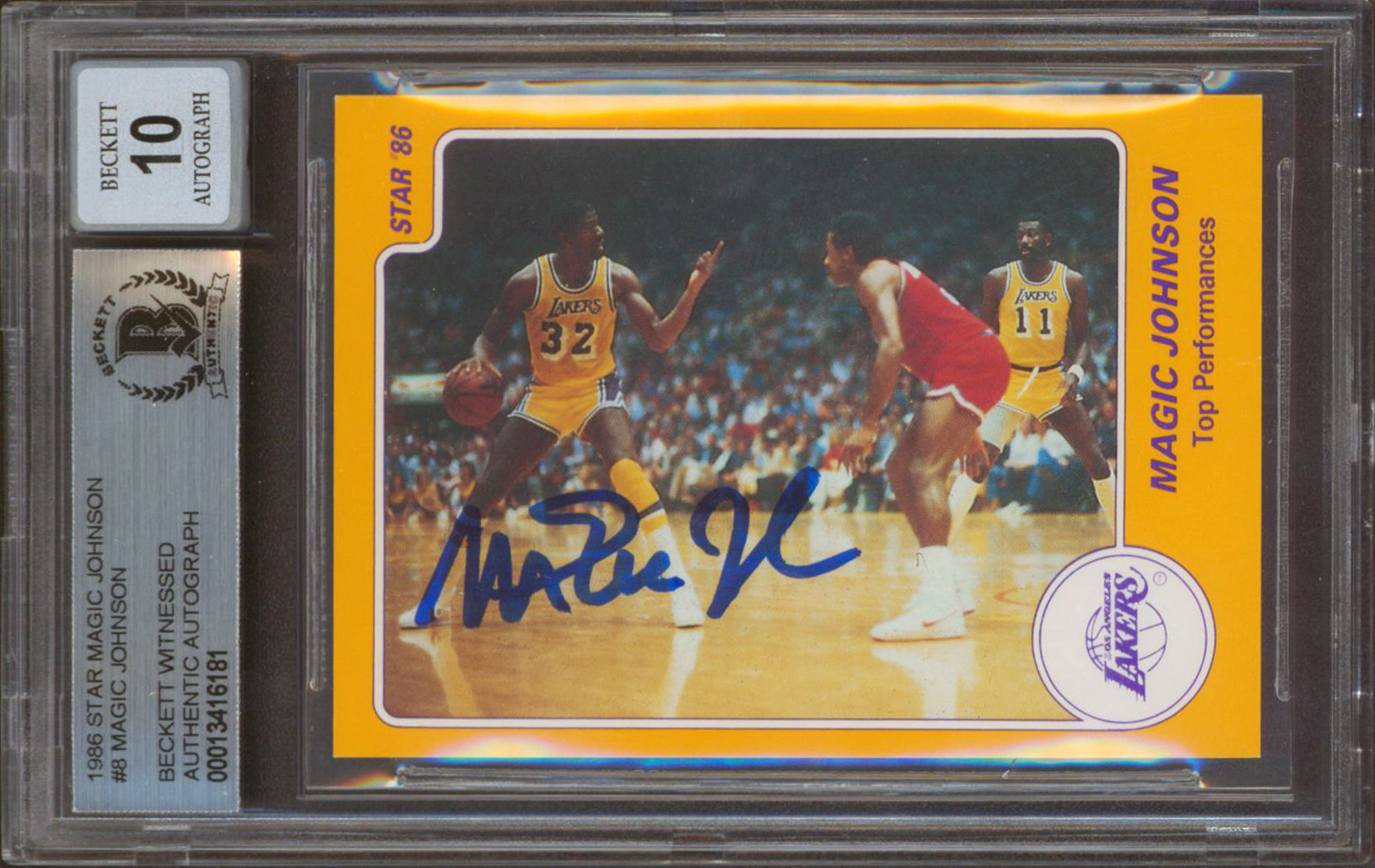 Lakers Magic Johnson Authentic Signed 1986 Star MJ #8 Card Auto 10! BAS Slabbed