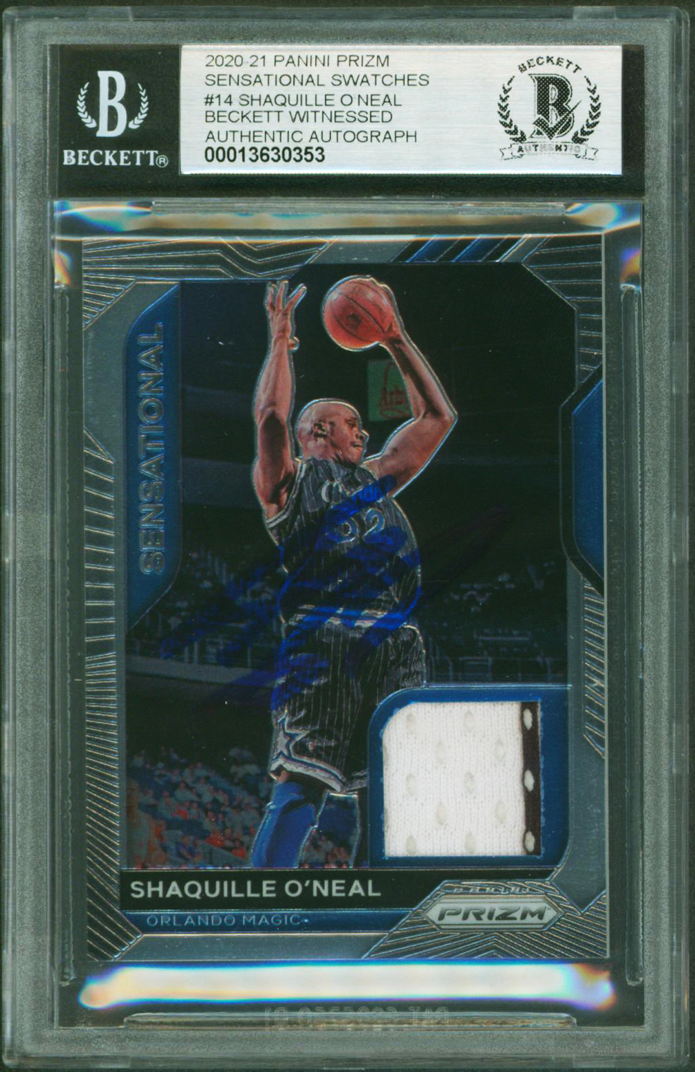 Shaquille O'Neal Signed 2020 Panini Prizm Swatches #14 Card Auto 10! BAS Slabbed