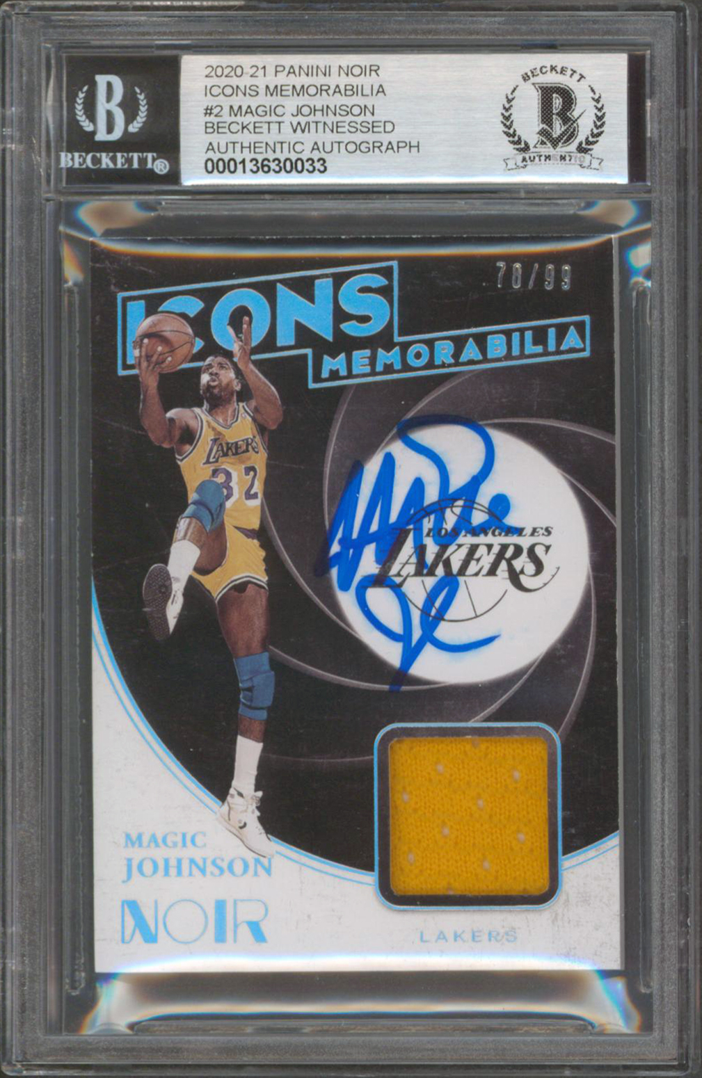 Lakers Magic Johnson Signed 2020 Panini Noir Icons Mem #2 Card Auto 10! BAS Slab