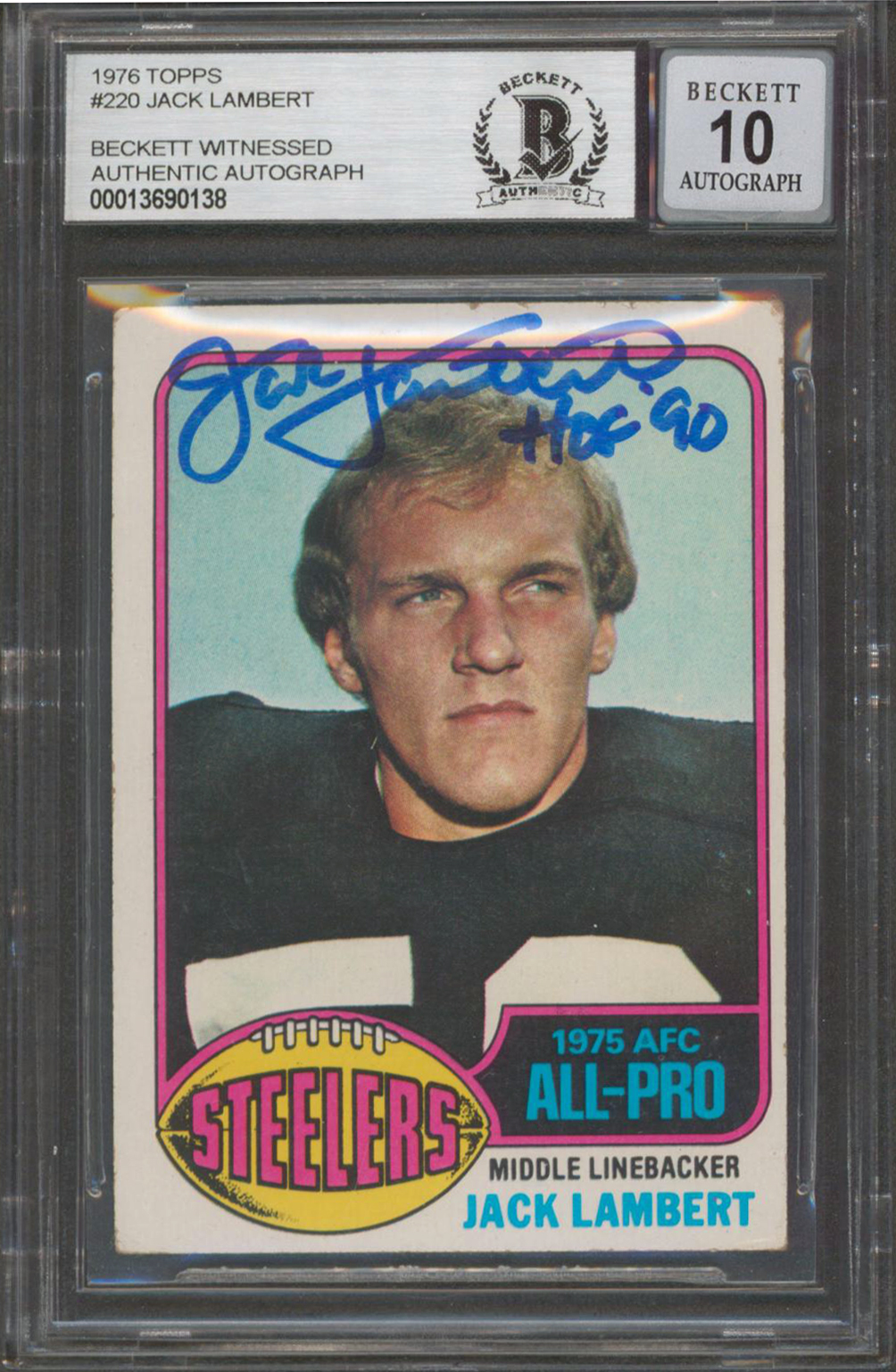 Steelers Jack Lambert "HOF 90" Signed 1976 Topps #220 Card Auto 10! BAS Slabbed