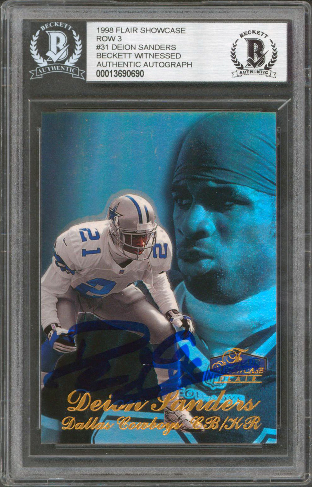 Cowboys Deion Sanders Signed 1998 Flair Showcase Row 3 #31 Card BAS Slabbed