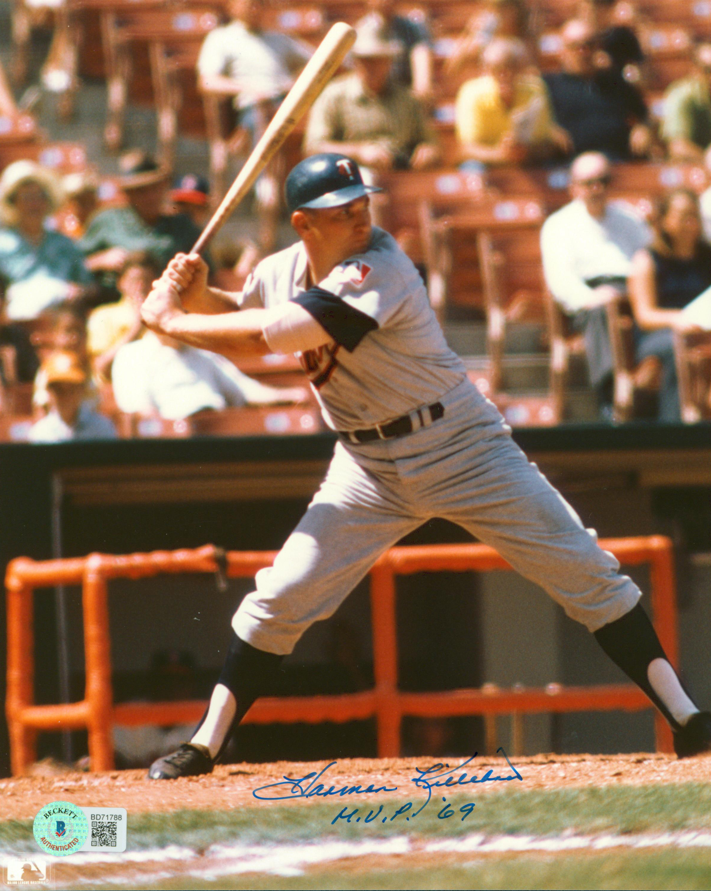 Twins Harmon Killebrew "M.V.P. 69" Signed 8x10 Vertical Batting Photo BAS