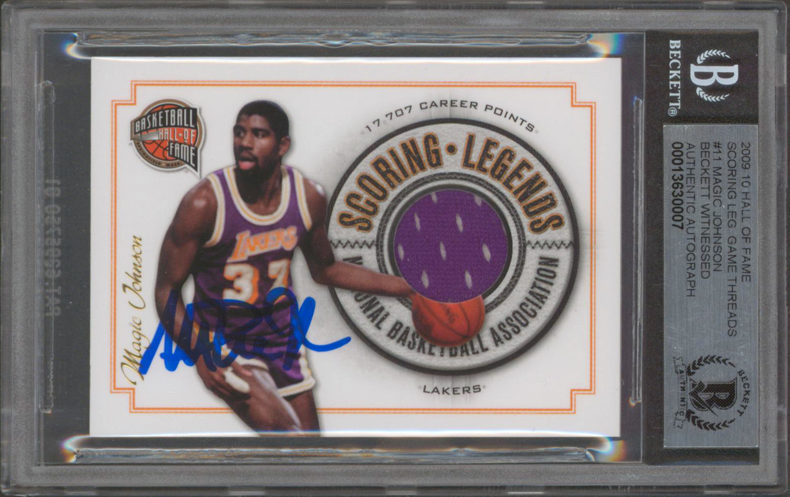 Lakers Magic Johnson Signed 2009 HOF SL Game Threads #11 Card Auto 10! BAS Slab