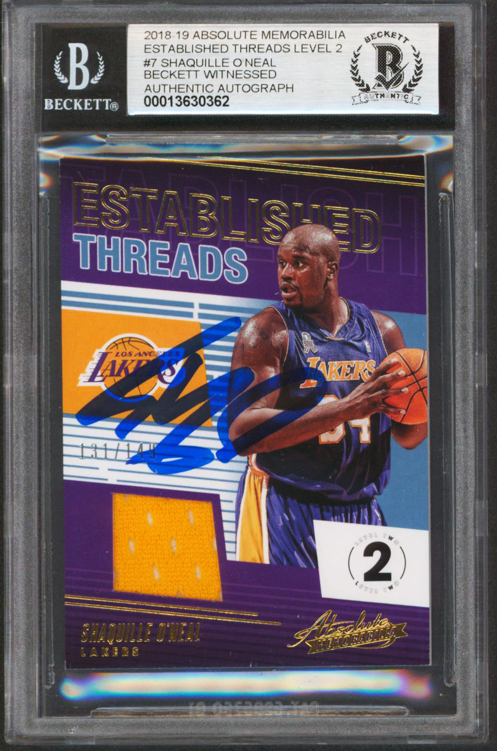 Shaquille O'Neal Signed 18 Absolute Mem Level 2 #7 131/149 Card Auto 10 BAS Slab