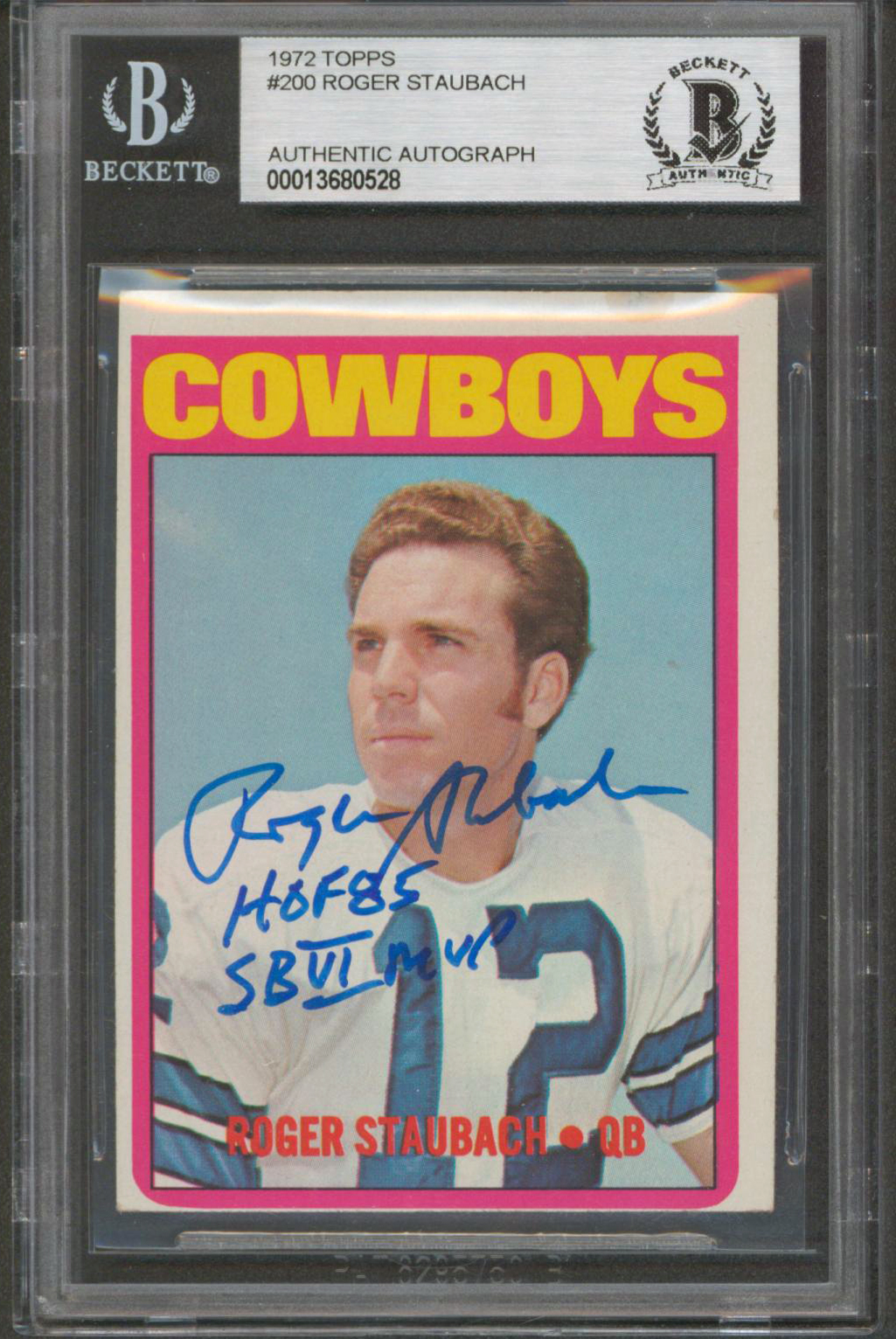 Cowboys Roger Staubach 2x Isnc Signed 1972 Topps #200 Rookie Card BAS Slabbed 1