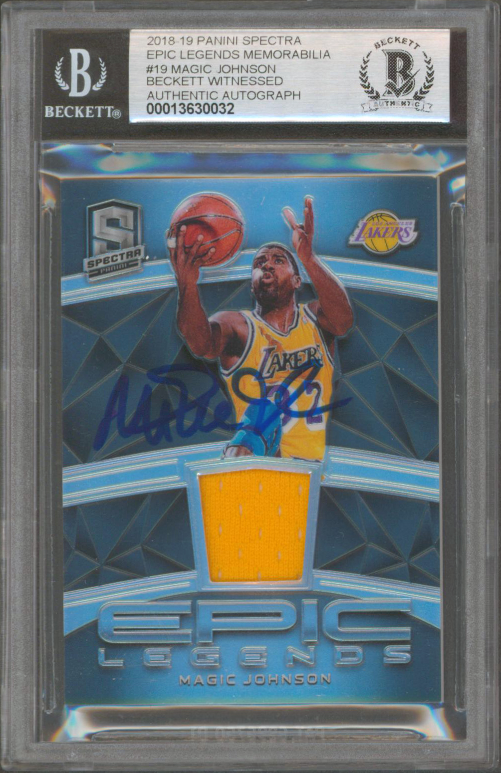 Lakers Magic Johnson Signed 2018 Panini Spectra EL Mem 19 Card Auto 10! BAS Slab