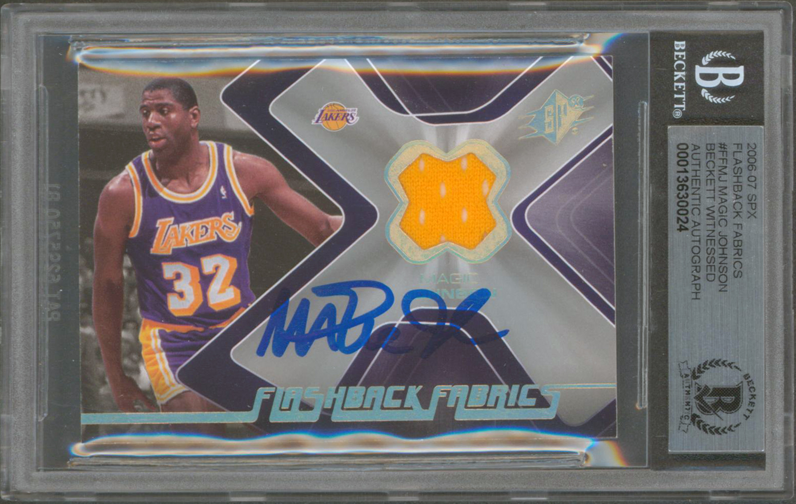 Lakers Magic Johnson Signed 2006 SPX FB Fabrics #FFMJ Card Auto 10! BAS Slabbed