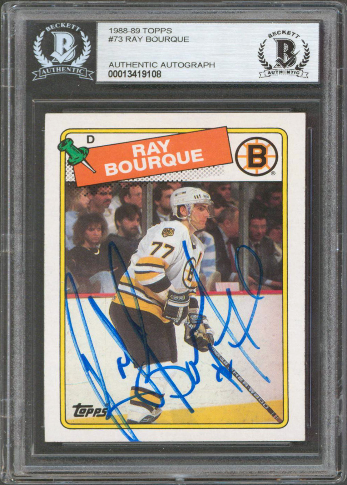 Bruins Ray Bourque Authentic Signed 1988 Topps #73 Card Autographed BAS Slabbed
