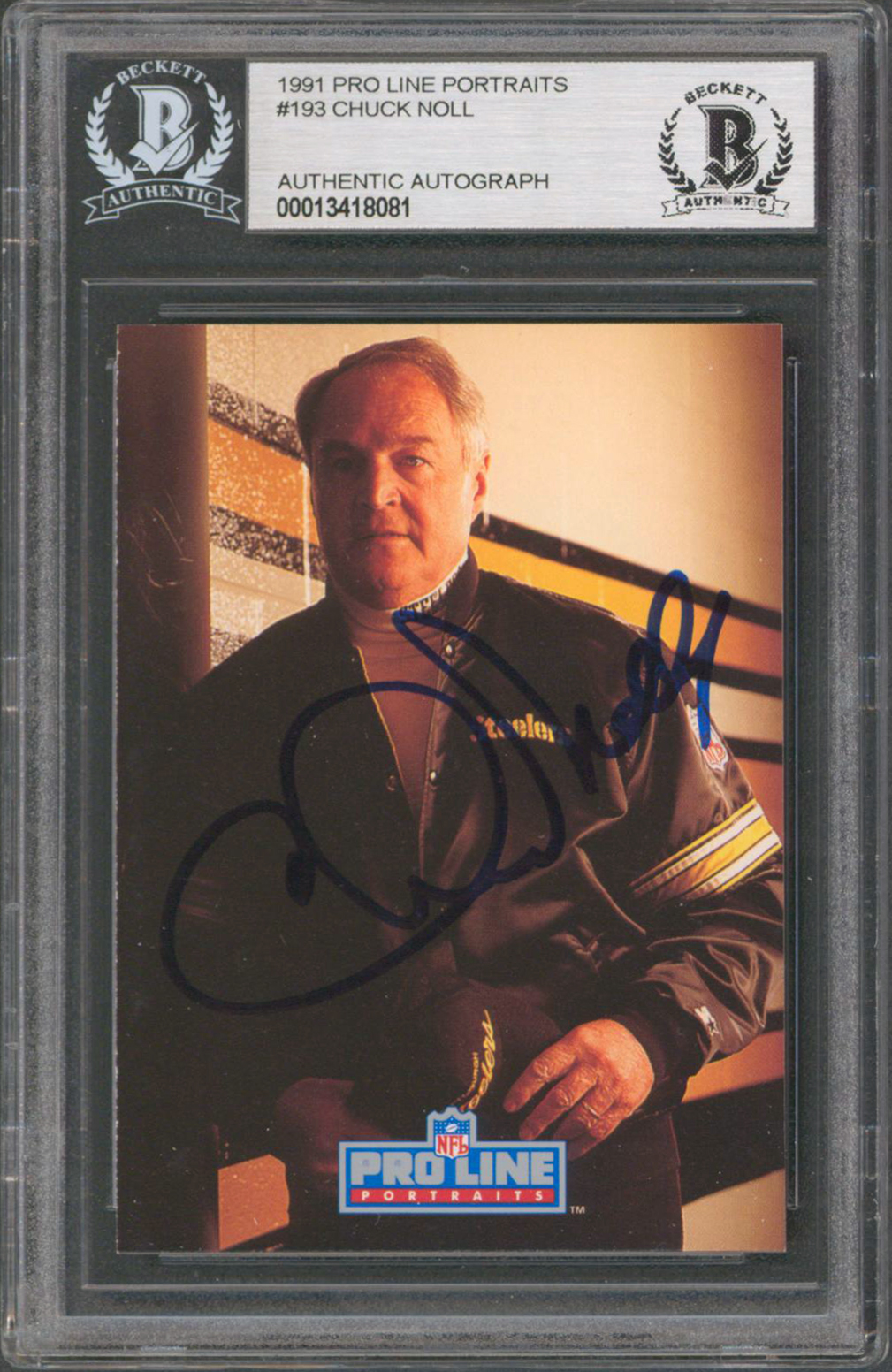 Steelers Chuck Noll Authentic Signed 1991 Pro Line Portraits #193 Card BAS Slab