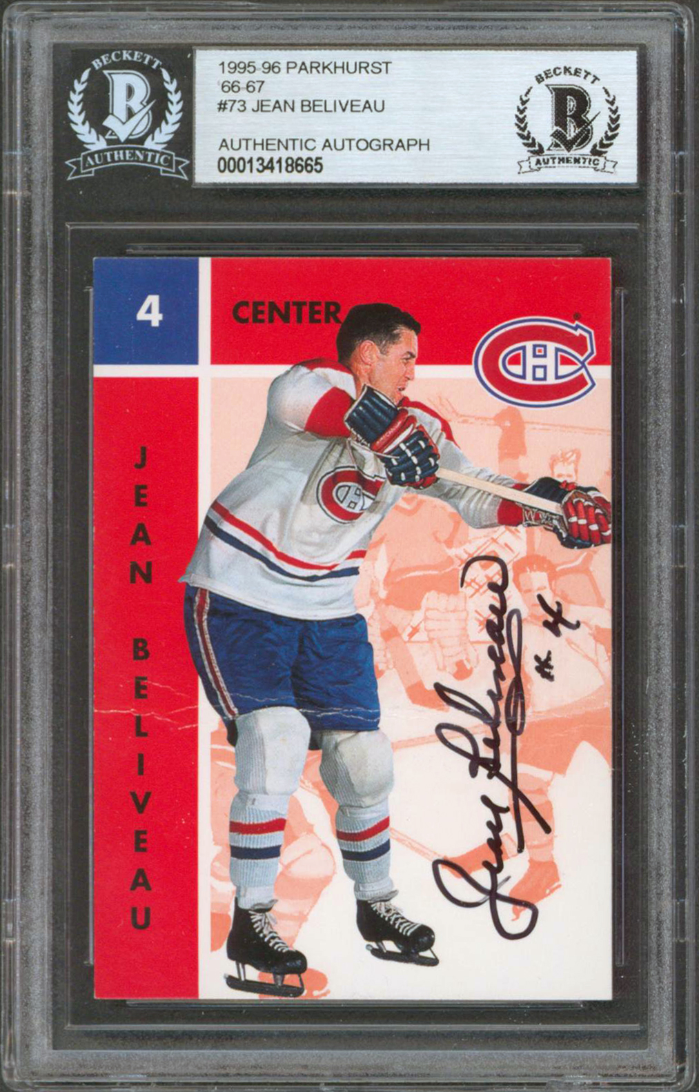 Canadiens Jean Beliveau Authentic Signed 1995 Parkhurst 66-67 #73 Card BAS Slab