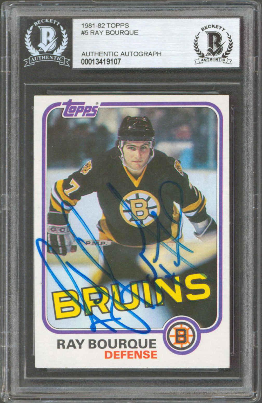 Bruins Ray Bourque Authentic Signed 1981 Topps #5 Card Autographed BAS Slabbed